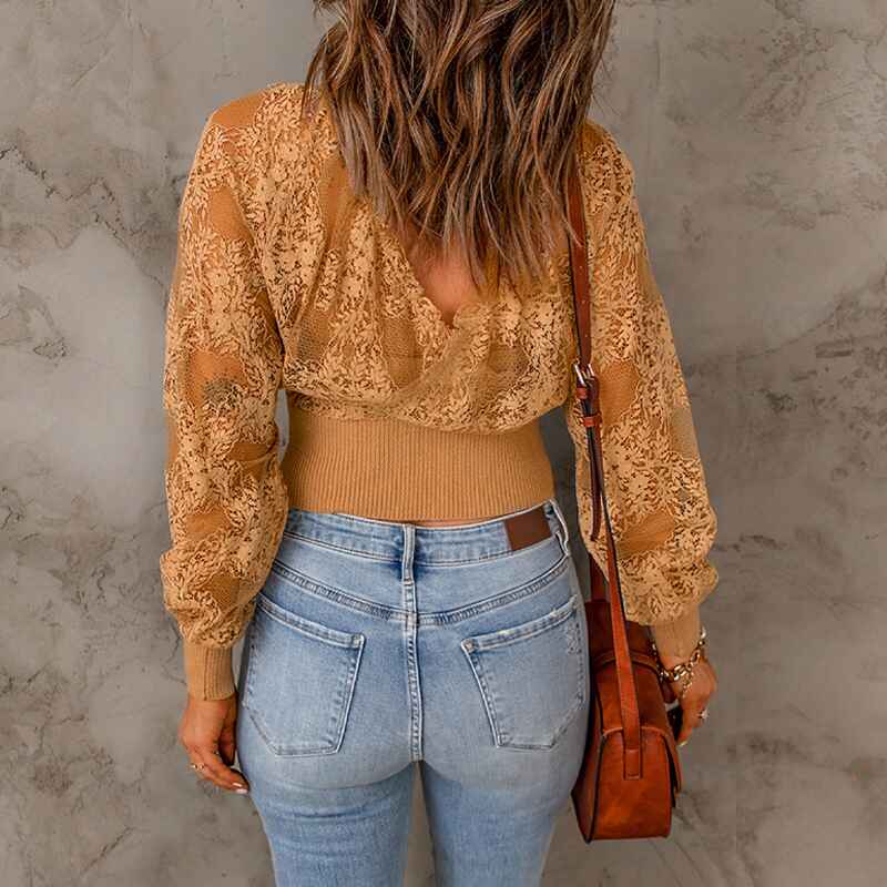 Women's V Neck Crop Knitted Sweater Long Sleeve Drop Shoulder Ribbed Jumper Pullover Solid Tops K128