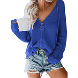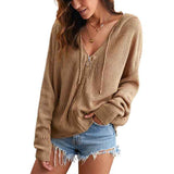 Women Zip Up Hooded Knit Cardigan Sweaters V Neck Long Sleeve Drawstring Ripped Hem Jacket Coat Fall Winter K130