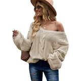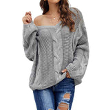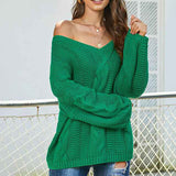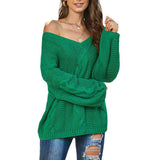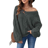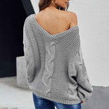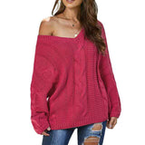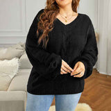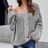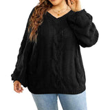 Women's Casual Oversized Long Sleeve Sweaters V Neck Cable Knit Sweater Pullovers Tops K139