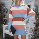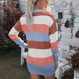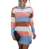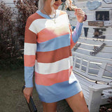 Women's Sweater Bodycon Dress Colorblock Striped Long Sleeve Slim Fit Knit Sweater Dress K148