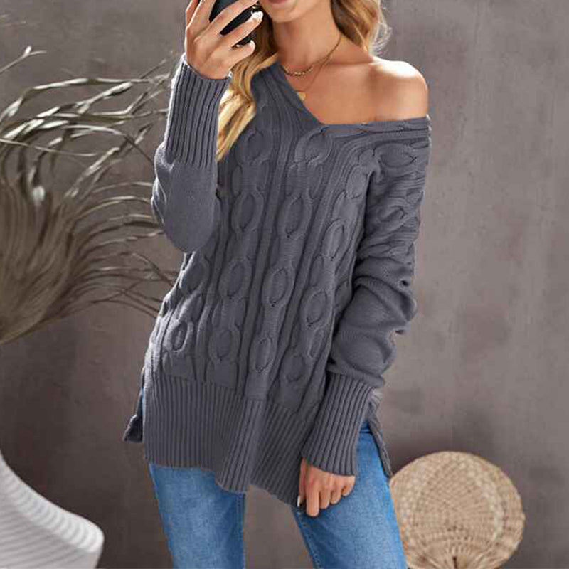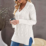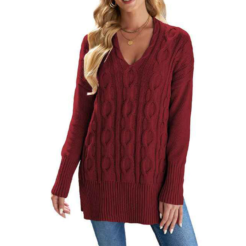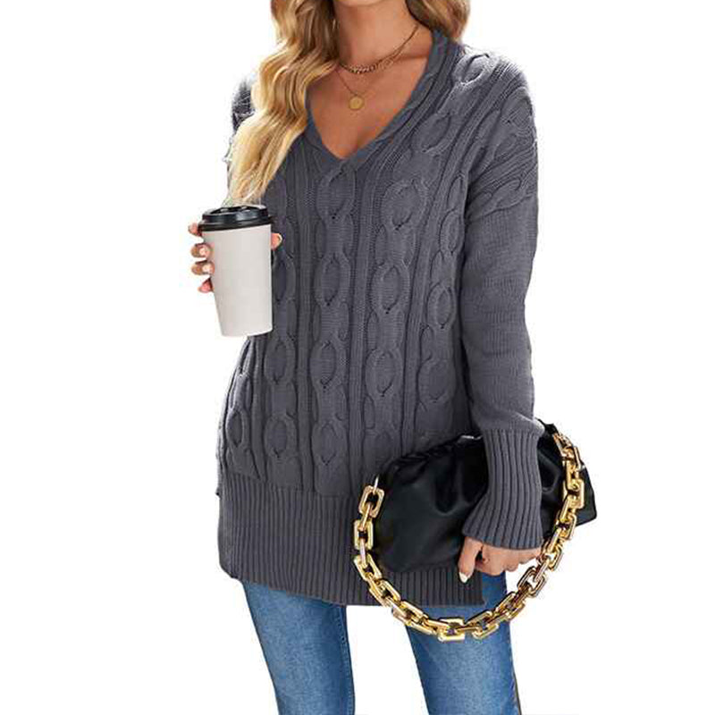 Womens Cable Knit Sweaters V Neck Pullover Tops Long Sleeve Casual Sweater Blouse Oversize Knit Shirts K151