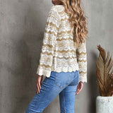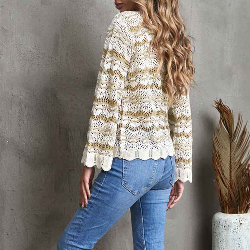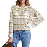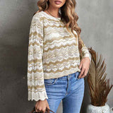 Women Crochet Hollow Out Crewneck Long Sleeve Knit Sweaters Pullover Jumper Tops K156