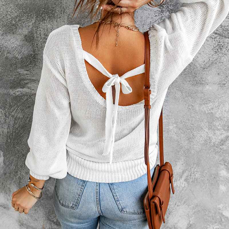 Women's Oversized Sweaters Winter Sexy Open Back Pullover Sweater Chunky Cable Knit Tops K174