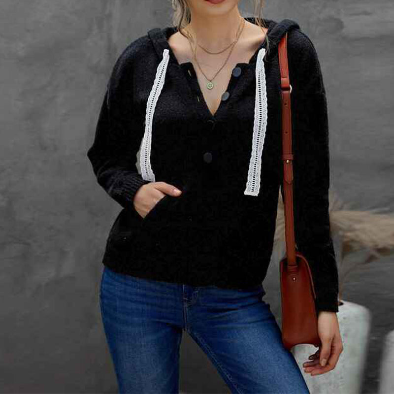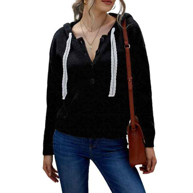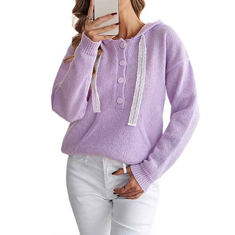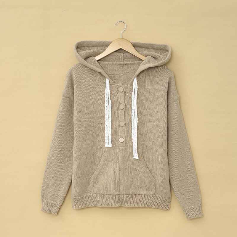Women Pullover Hoodie Button Collar Drawstring Long Sleeve Sweatshirt with Pockets K188