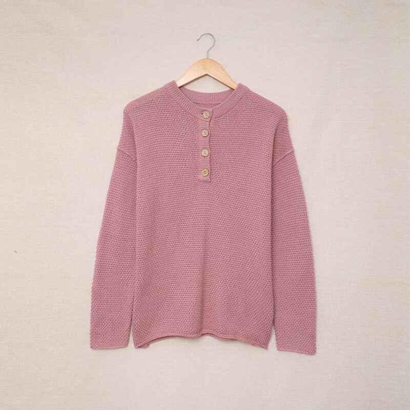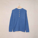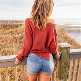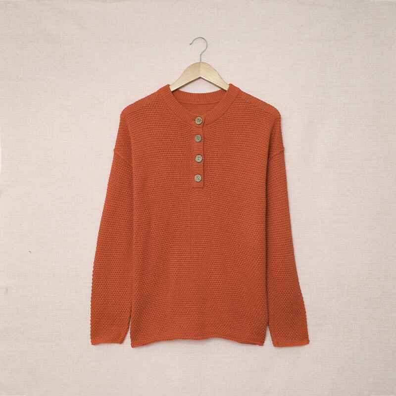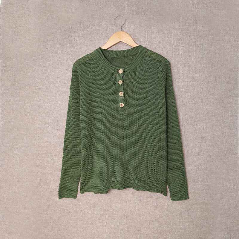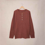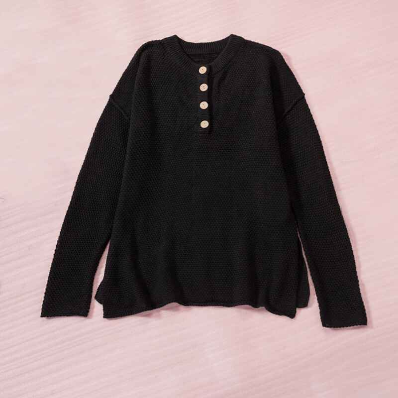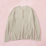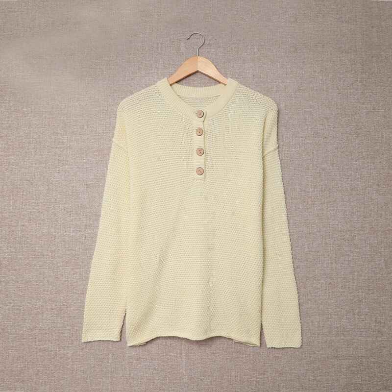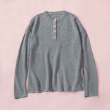 Women's Waffle Knit V Neck Sweater Casual Long Sleeve Side Slit Button Henley Pullover Jumper Top K189