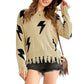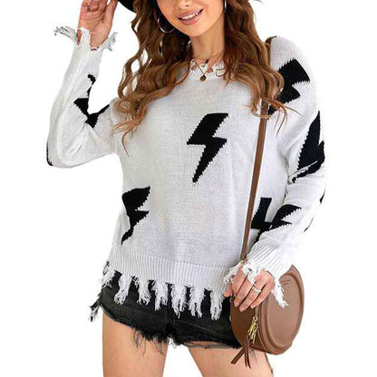 Women's Loose Long Sleeve Crew-Neck Ripped Pullover Knit Sweater Crop Top K193