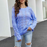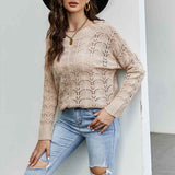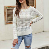 Women Crochet Hollow Out Crewneck Long Sleeve Knit Sweaters Pullover Jumper Tops K095