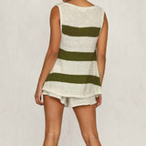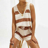 Women's 2 Piece Outfits Sweater Sets Off Shoulder Knit Tops Waist Short Suits Casual Pajama Set K089-tops