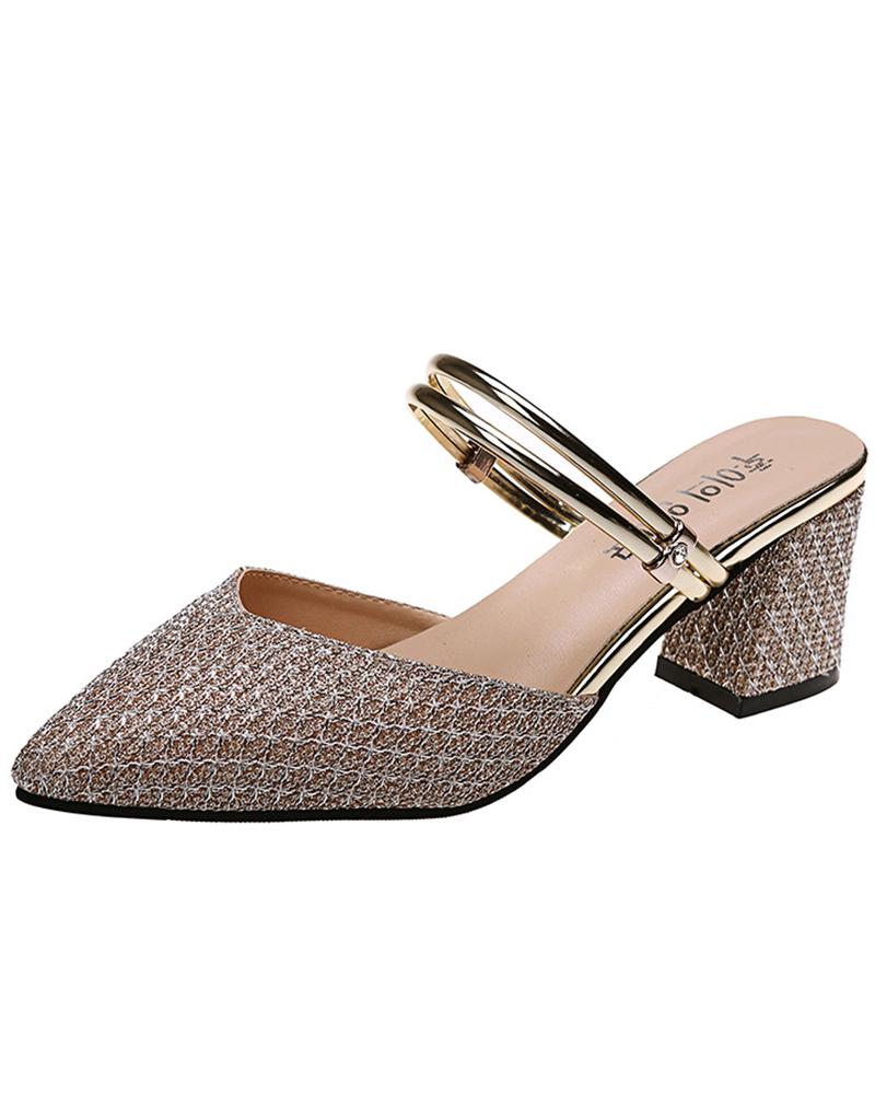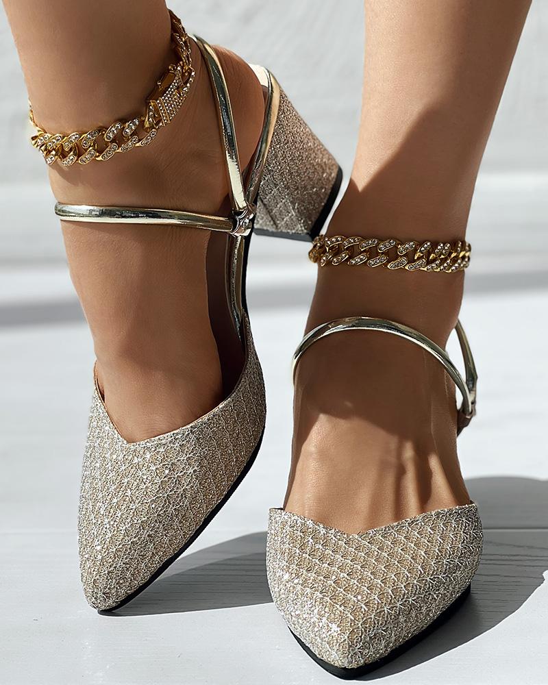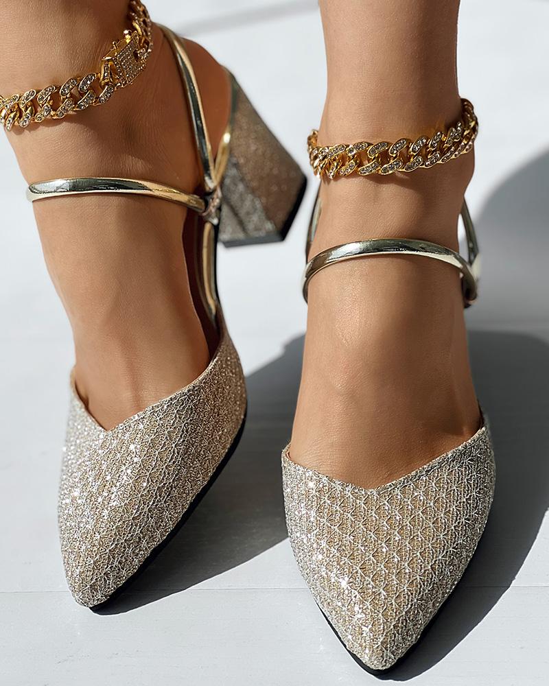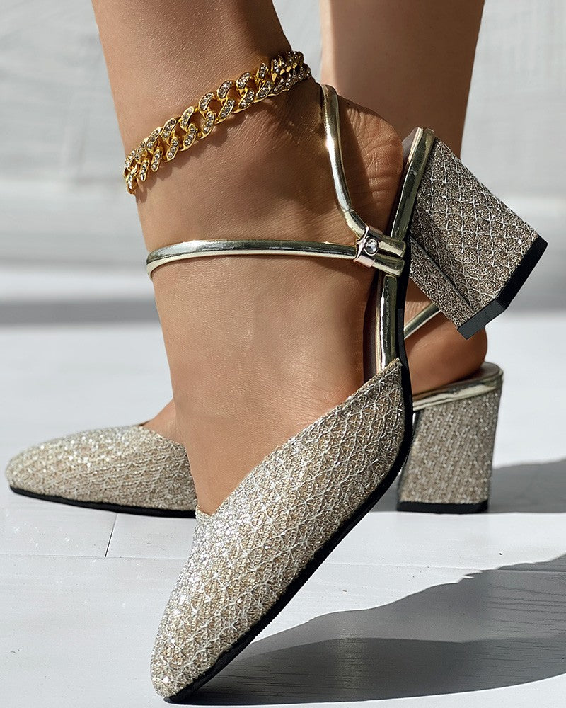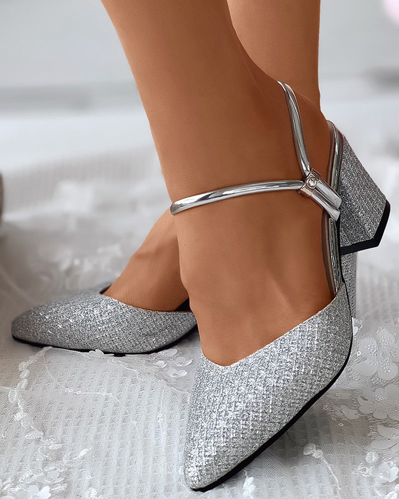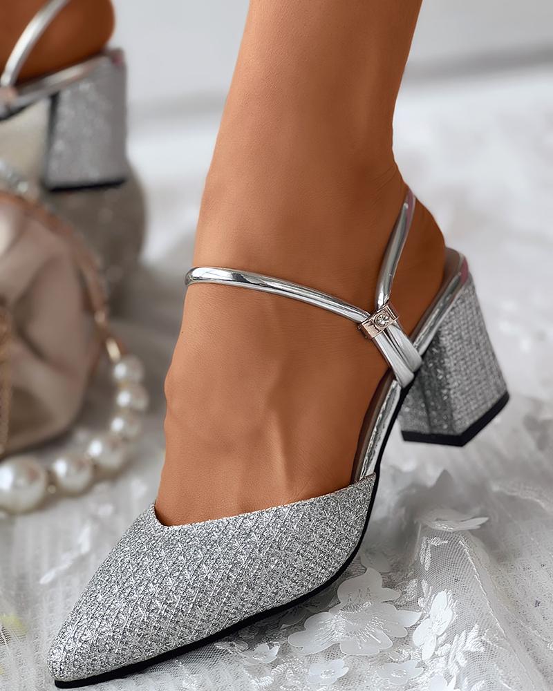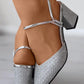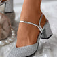 Glitter Slingback Chunky Heels Wedding Guest Shoes