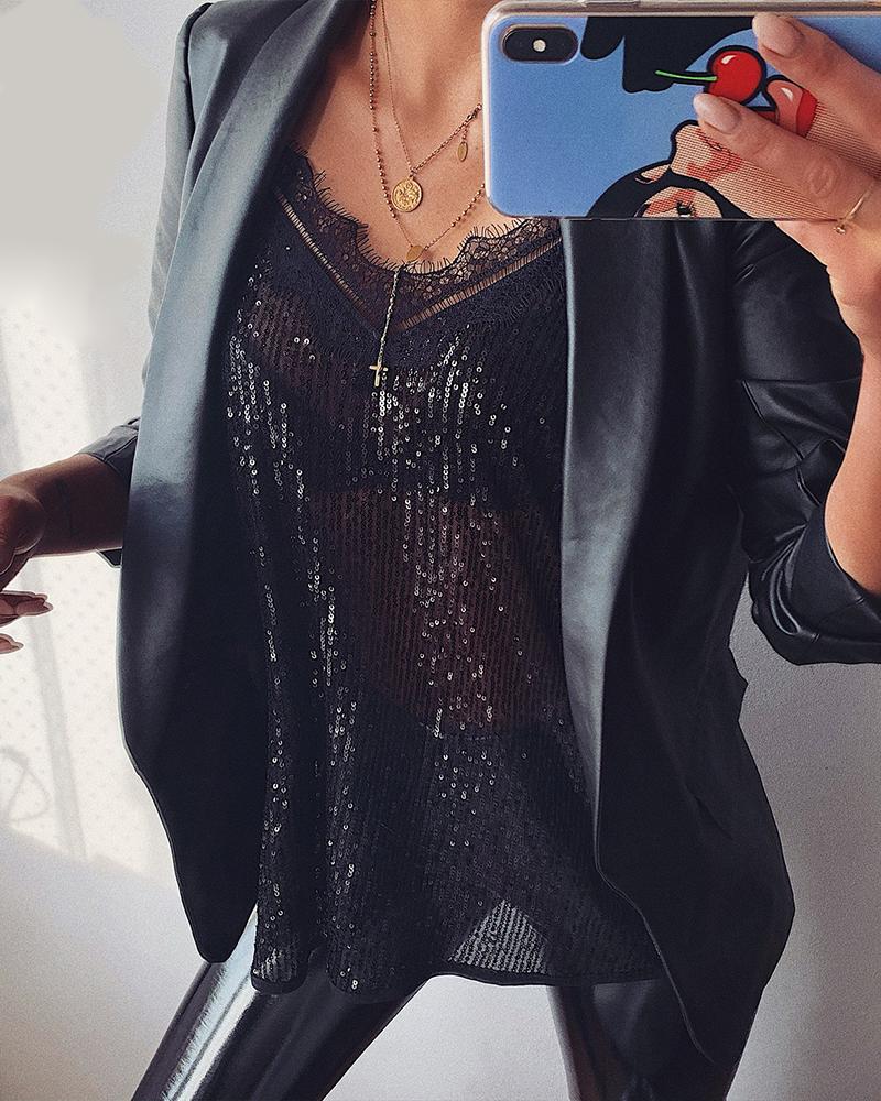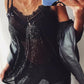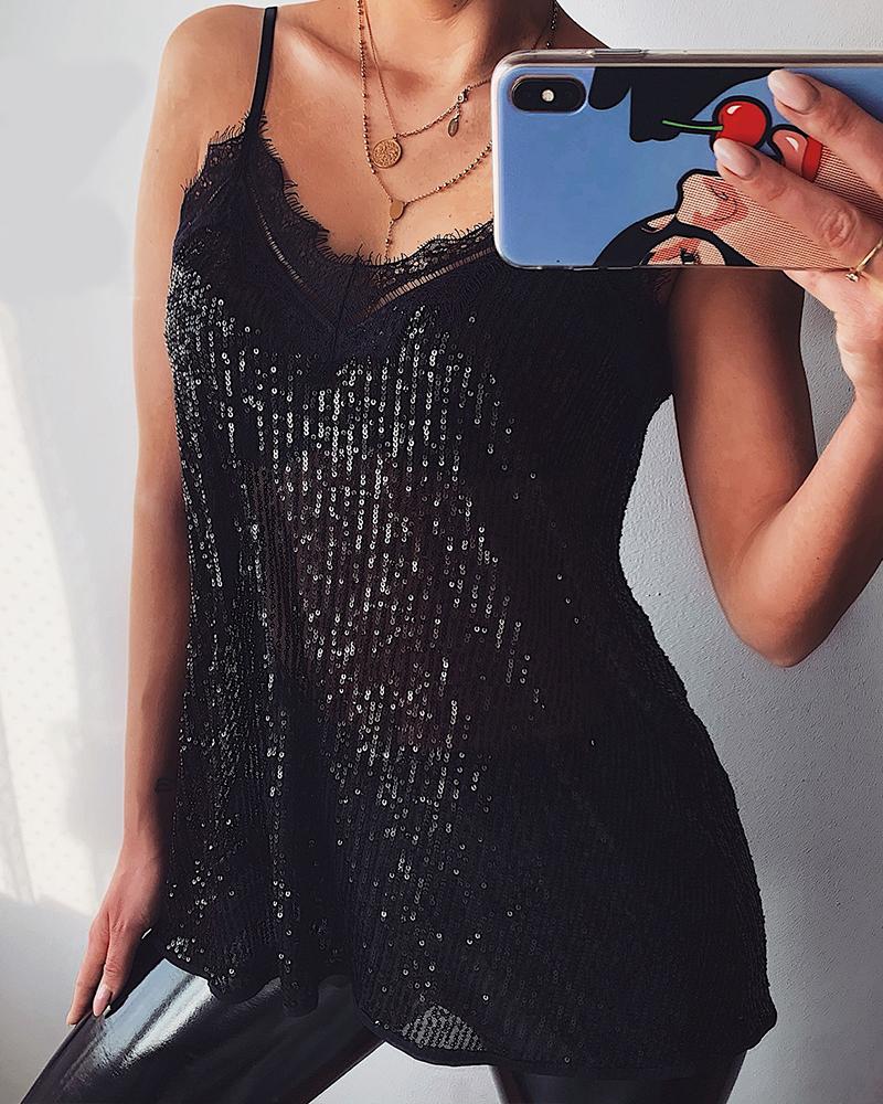 Glitter Spaghetti Strap Eyelash Lace Blouse