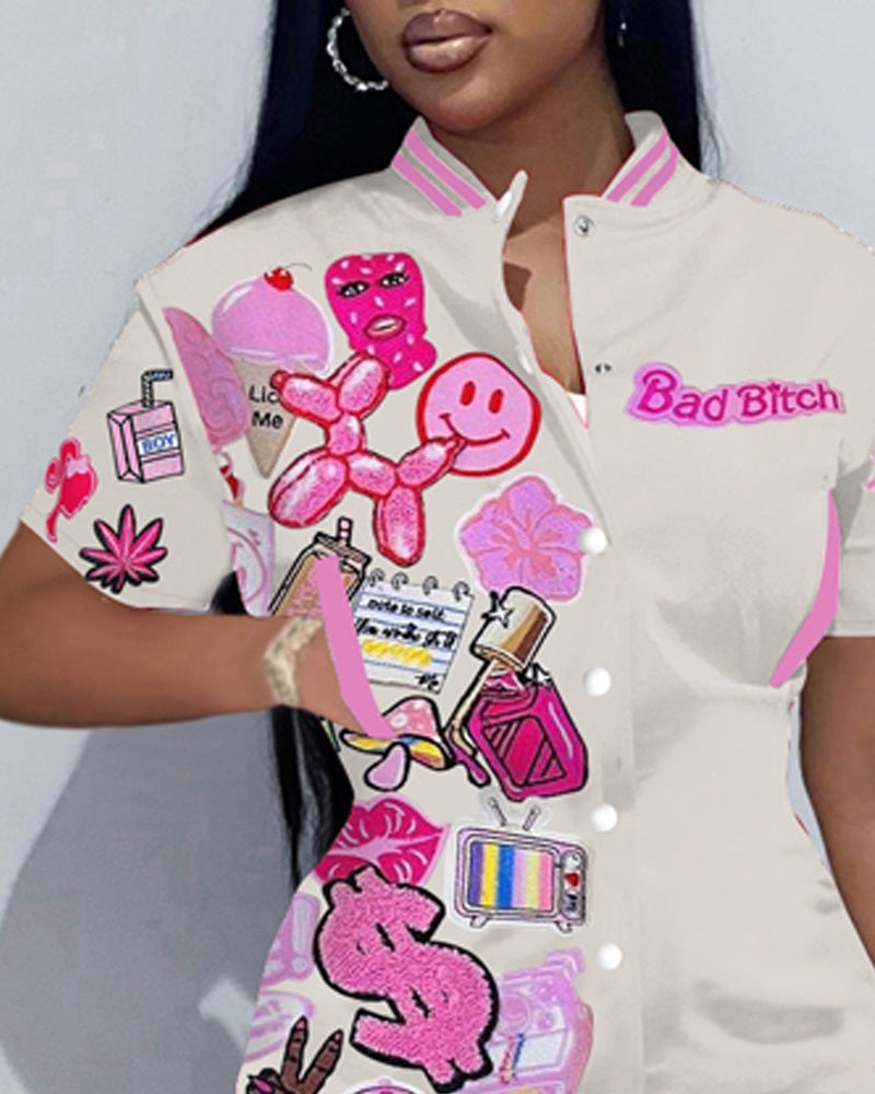 Graphic Print Baseball Collar Casual Dress