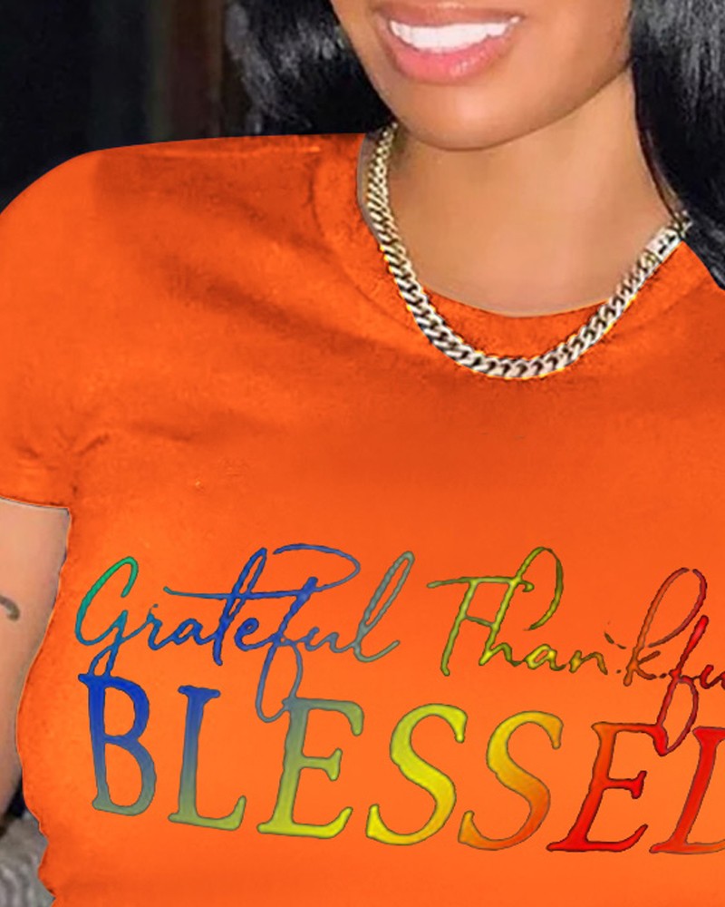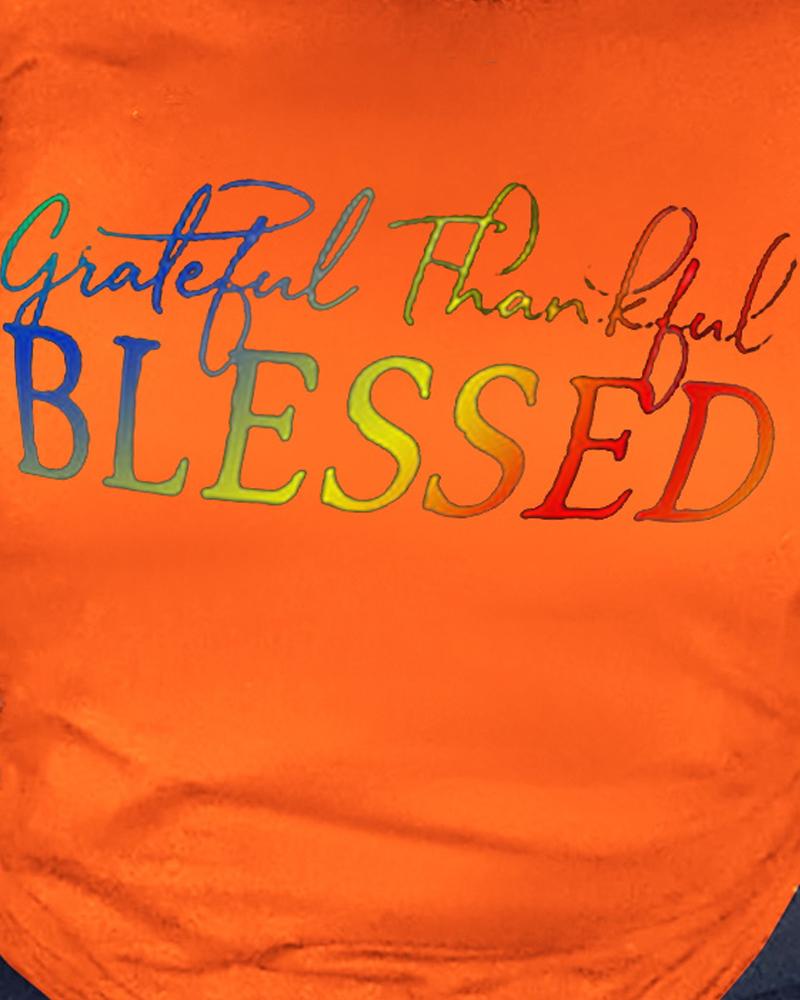 Grateful Thankful Blessed Ombre Letter Print Casual T shirt