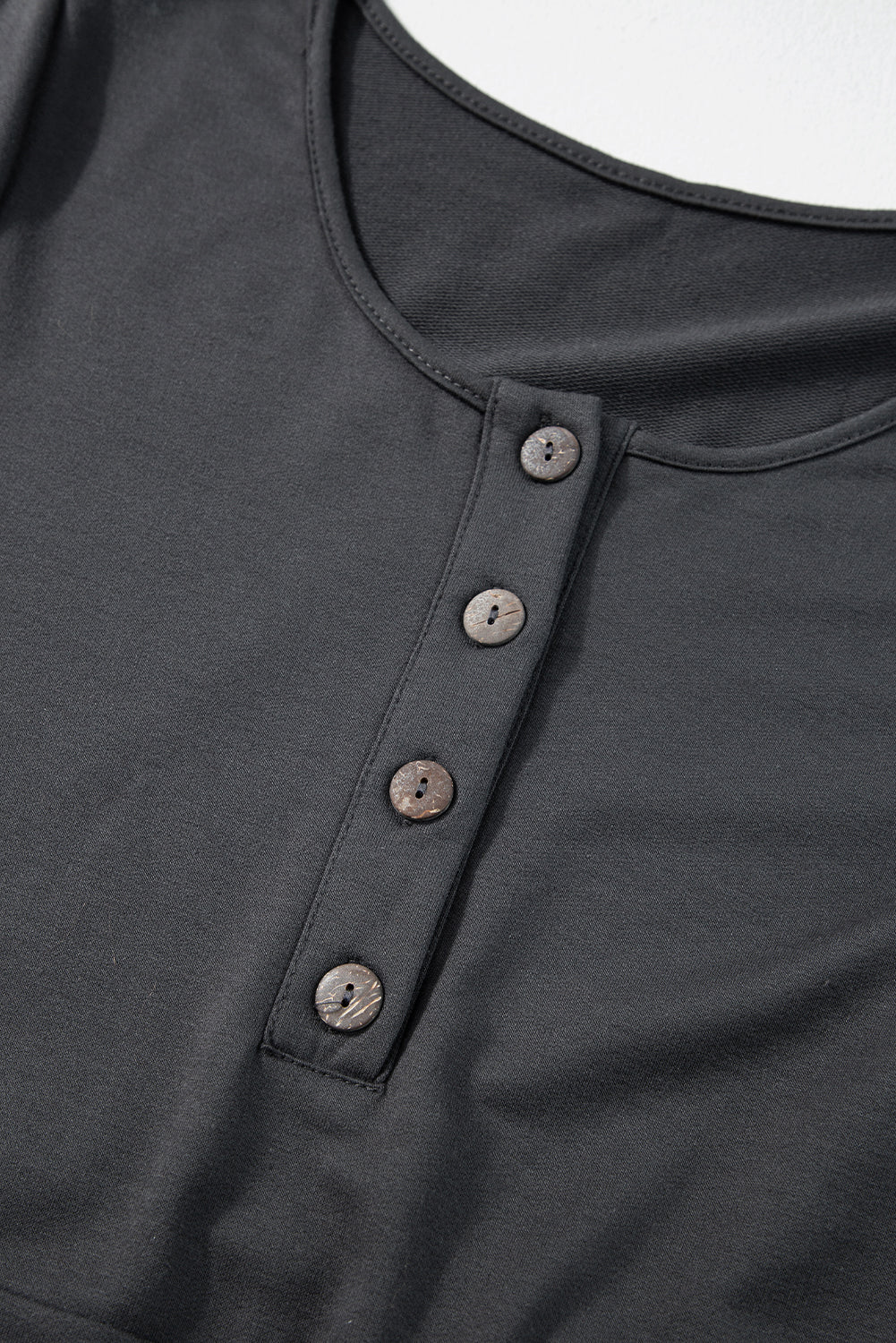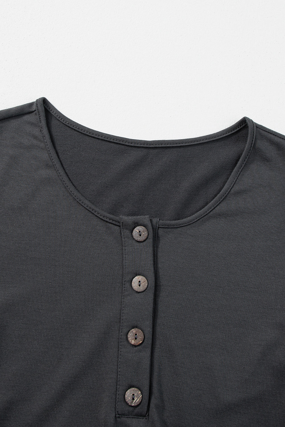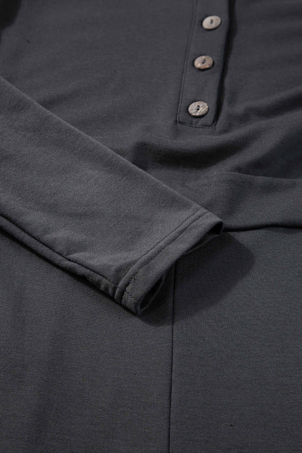 Gray Button Long Sleeve Wide Leg Jumpsuit