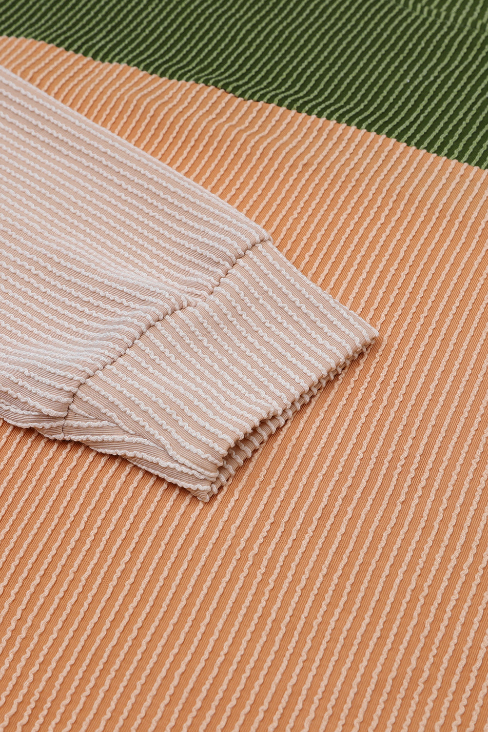 Green Color Block Long Sleeve Ribbed Loose Top