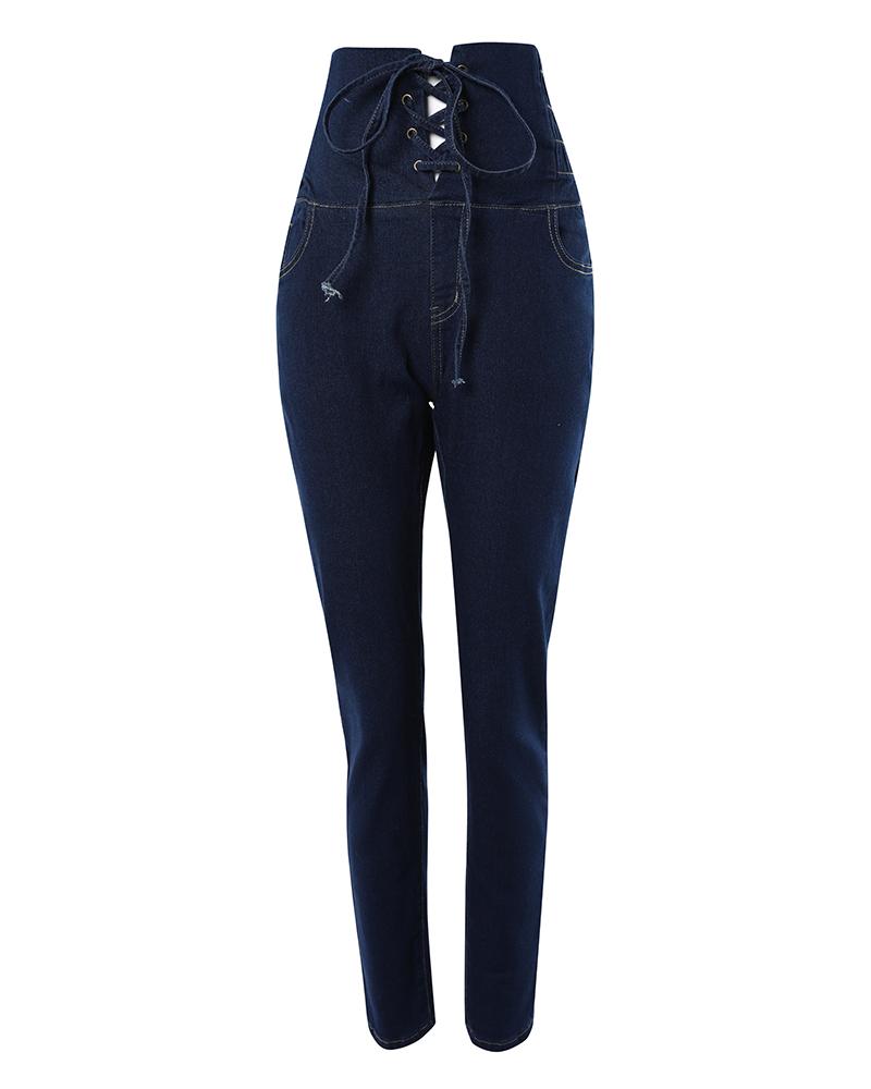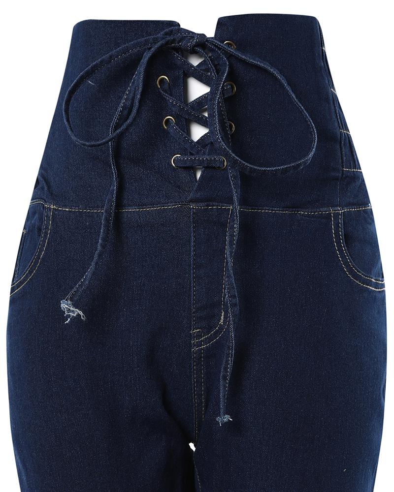 Grommet Eyelet Lace up High Waist Skinny Jeans