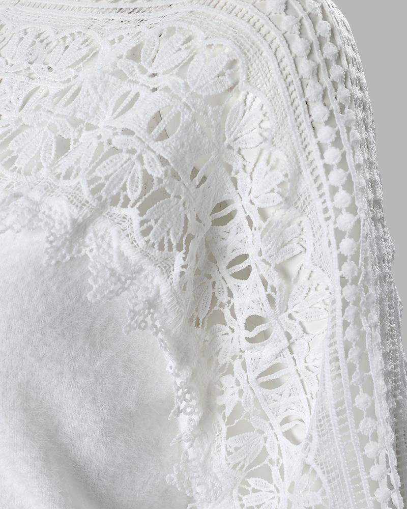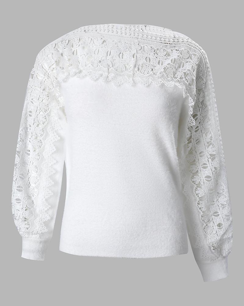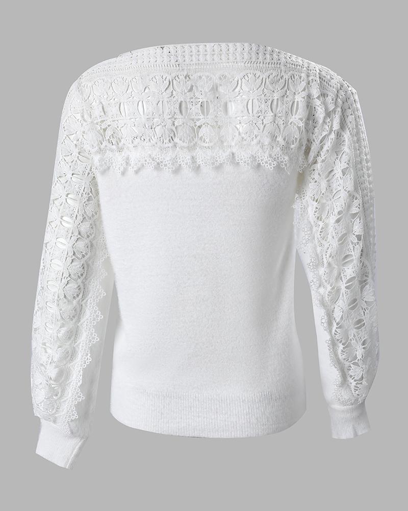 Guipure Lace Lantern Sleeve Knit Sweater