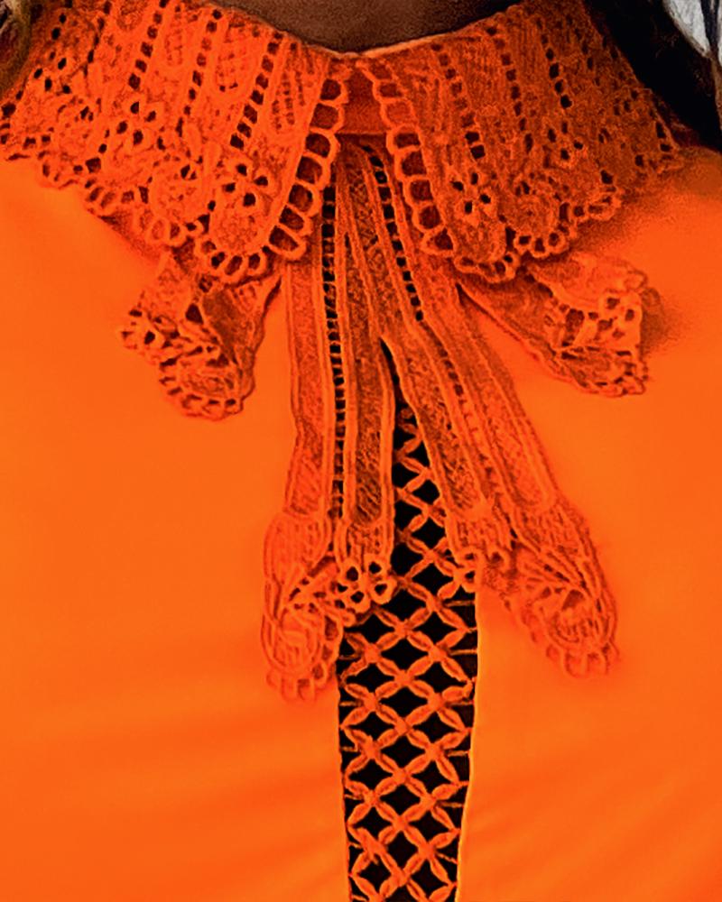 Guipure Lace Patch Puff Sleeve Maxi Dress