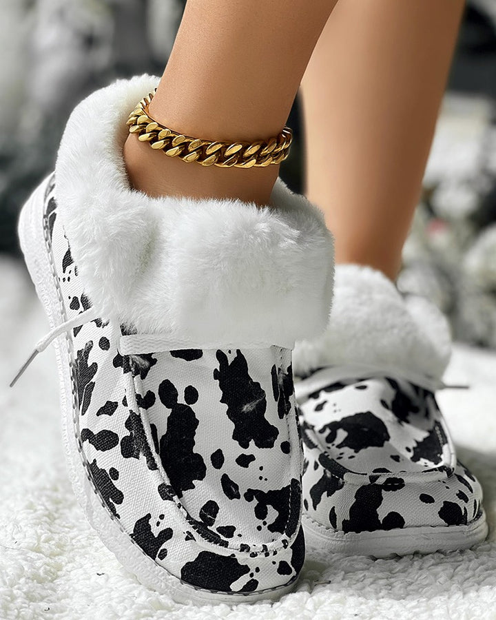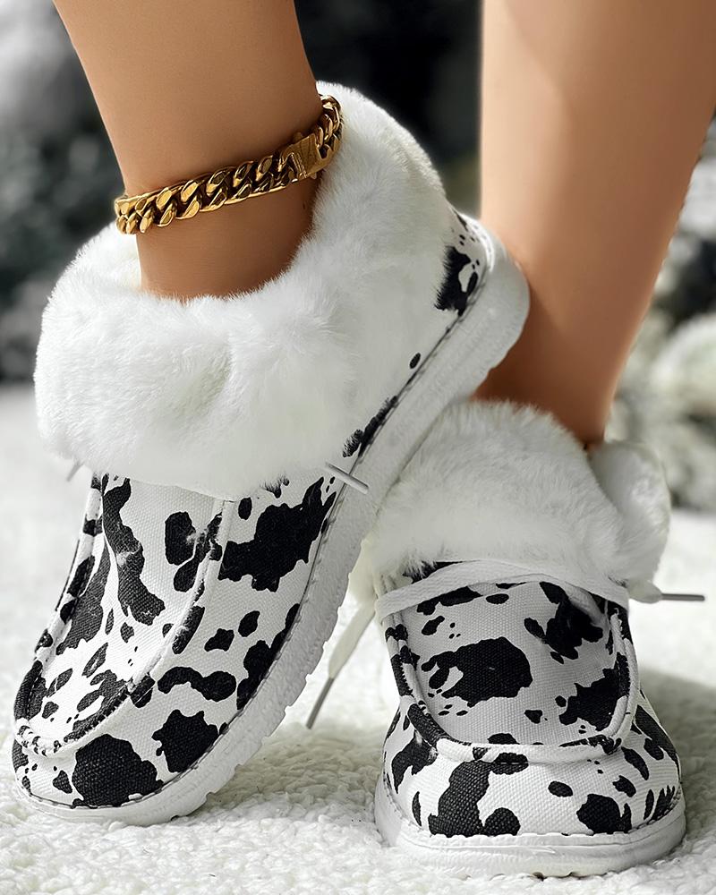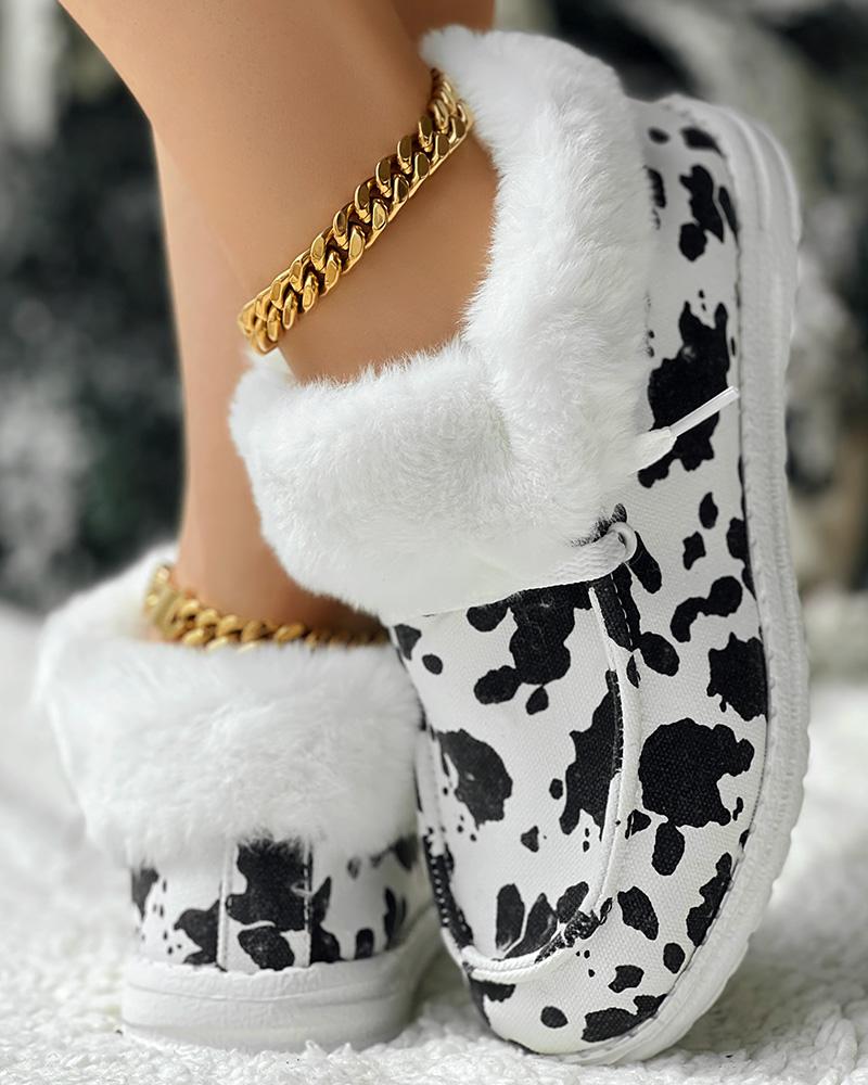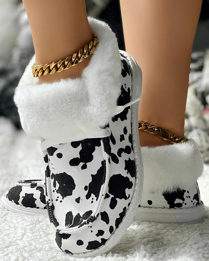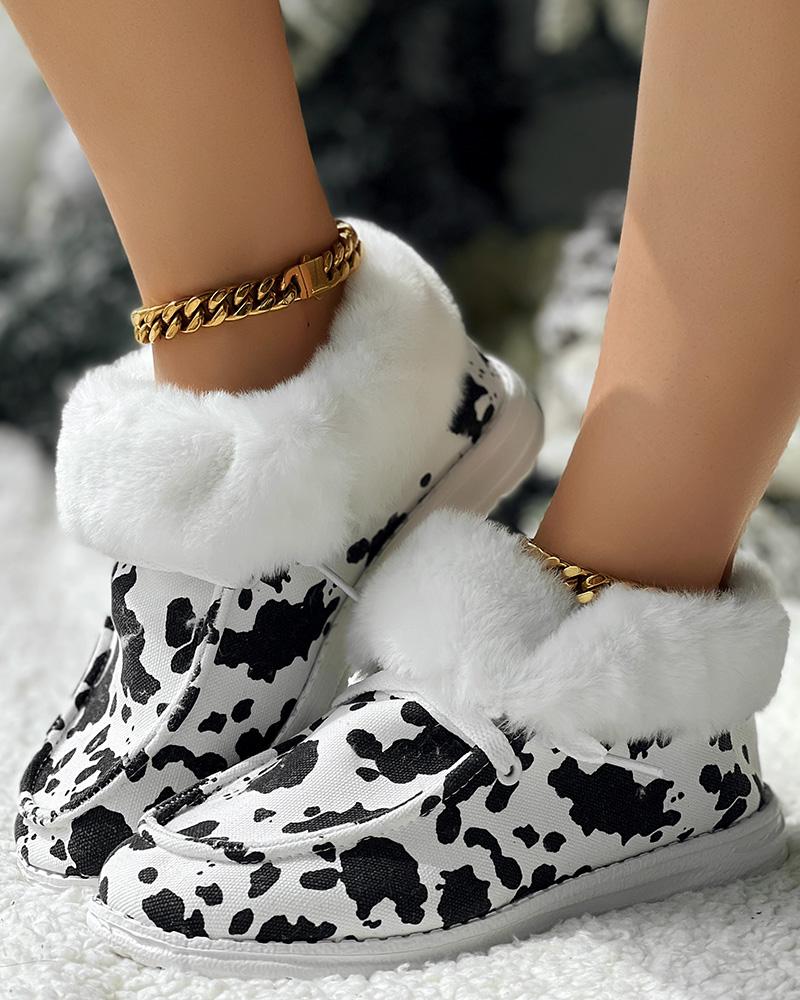 Halloween Cow Print Fuzzy Lined Ankle Boots