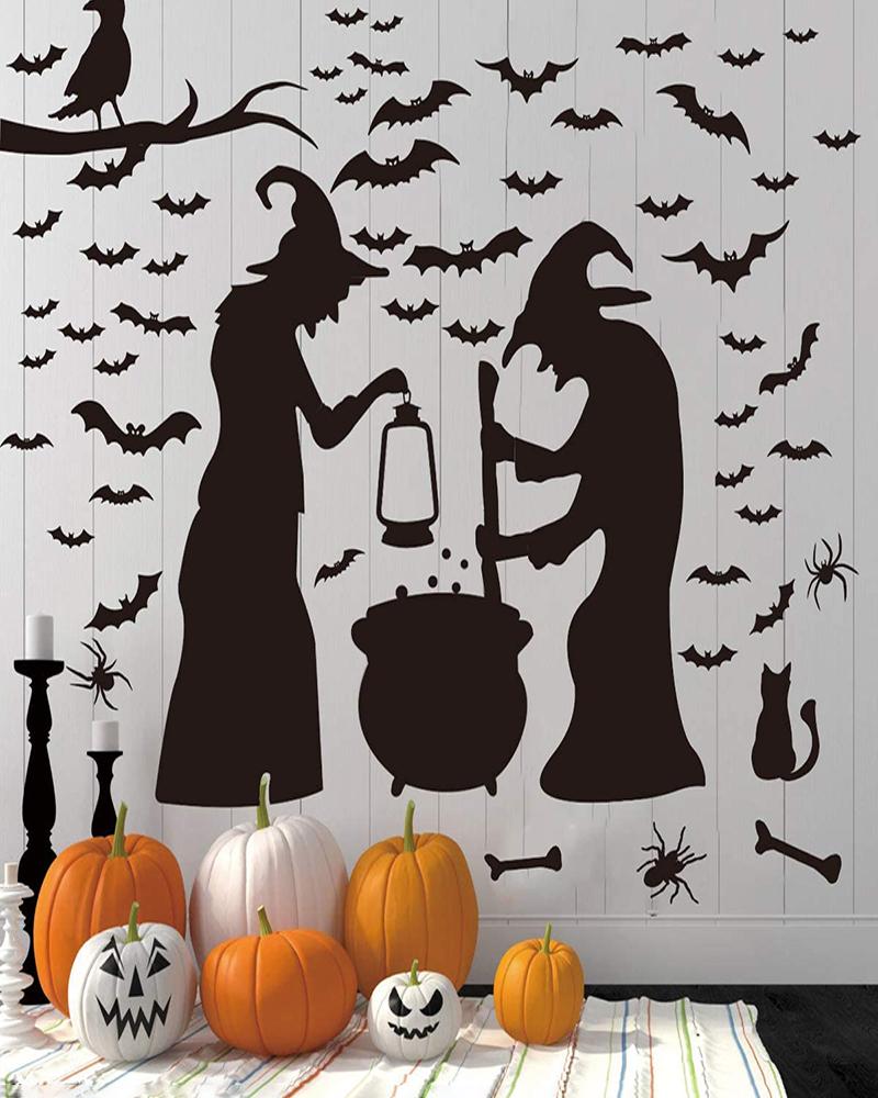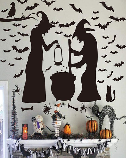 Halloween Decorations Wall Window Ornament Party Supplies 2 Witches With Bats Spider Cat and Crow