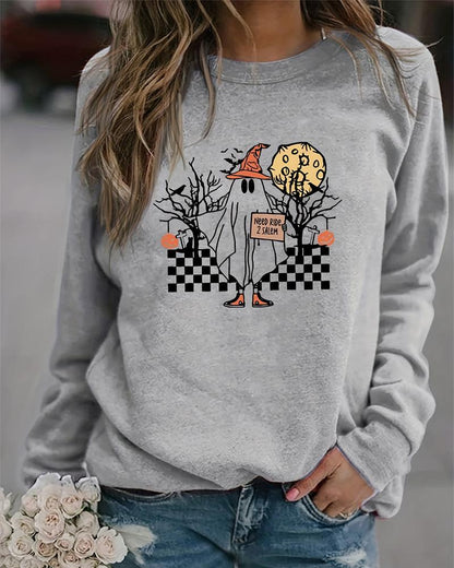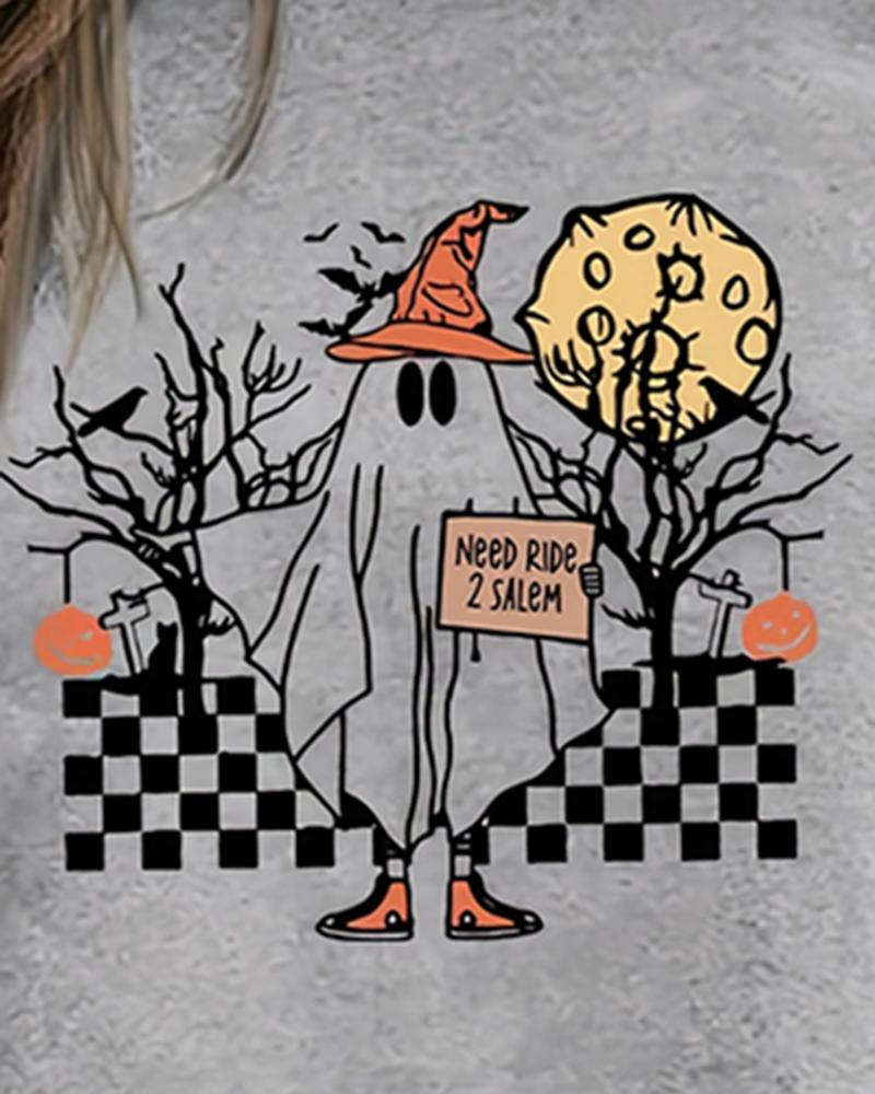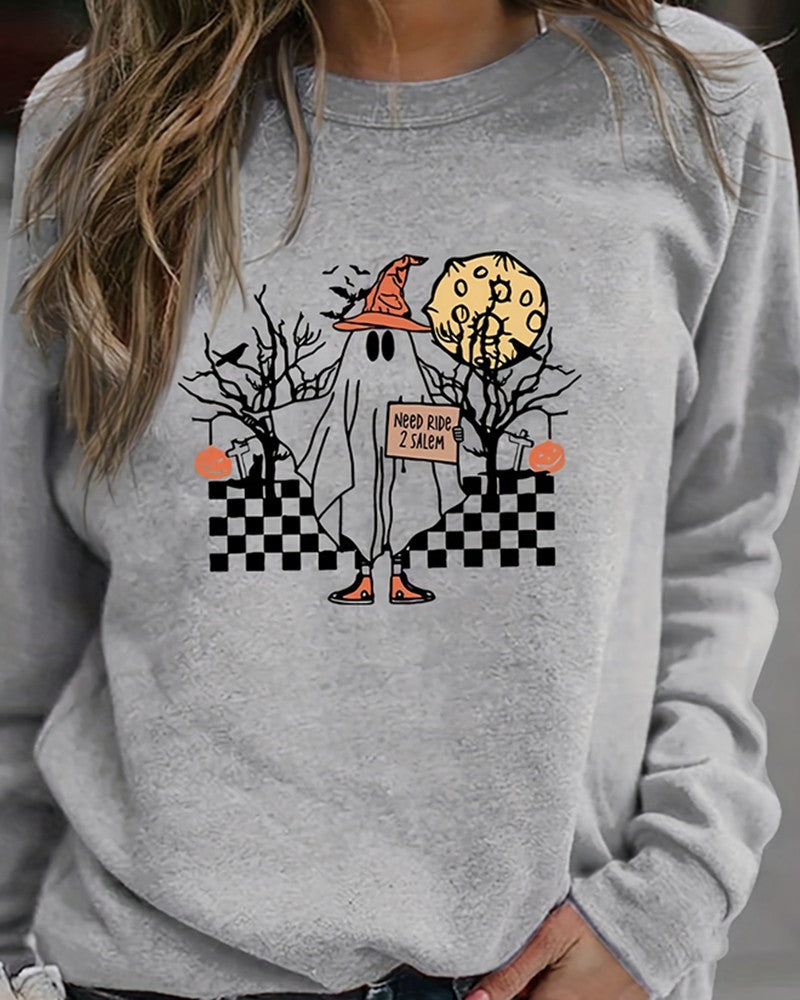 Halloween Ghost Graphic Print Crew Neck Sweatshirt