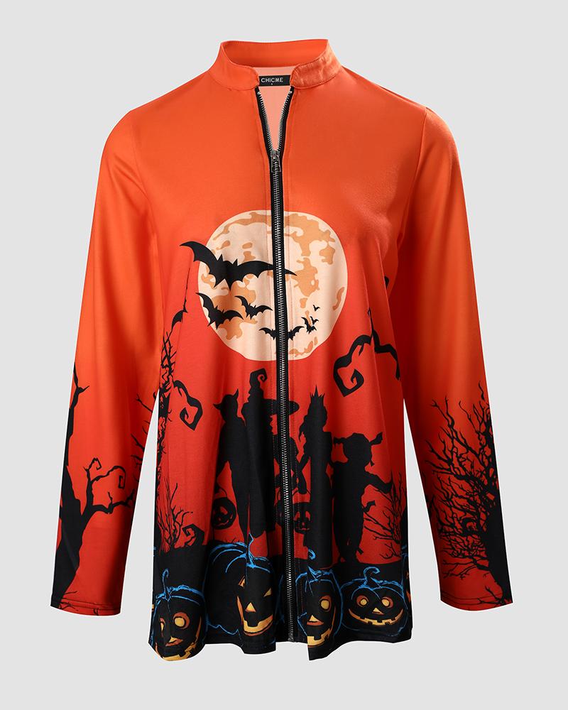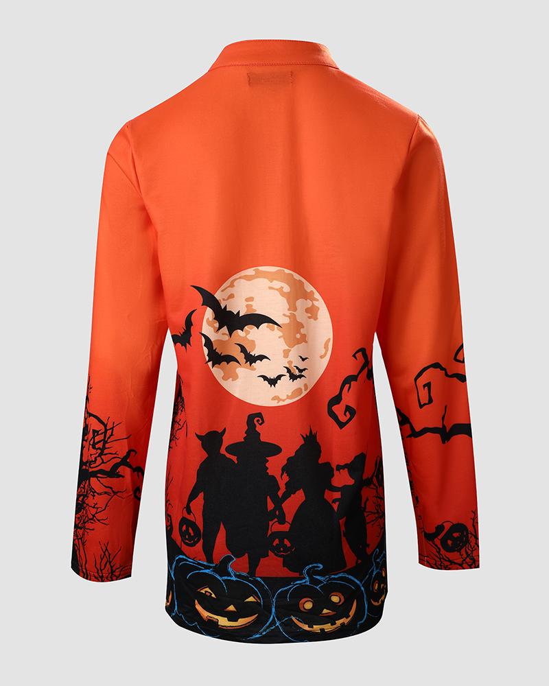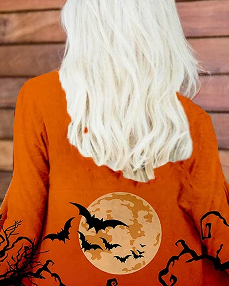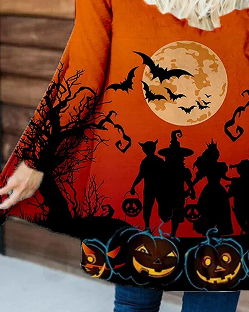 Halloween Graphic Pumpkin Print Long Sleeve Coat