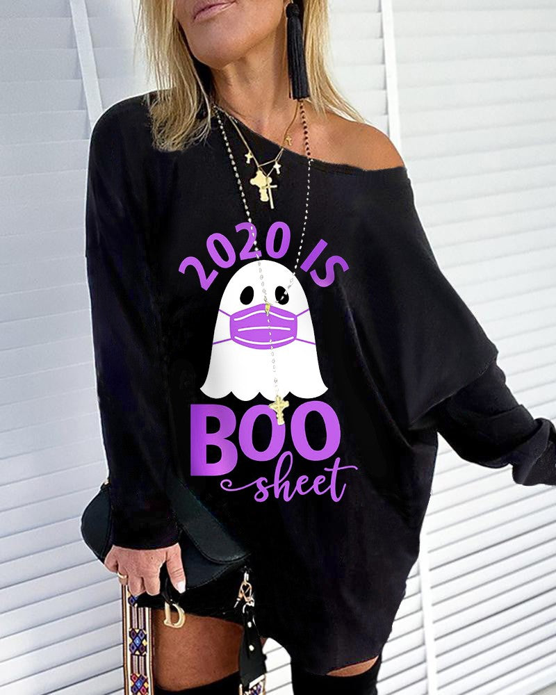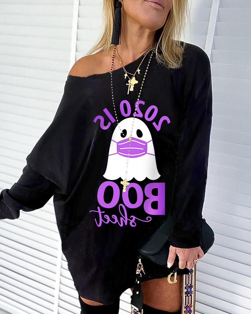 Halloween Letter Ghost Print Casual Sweatshirt