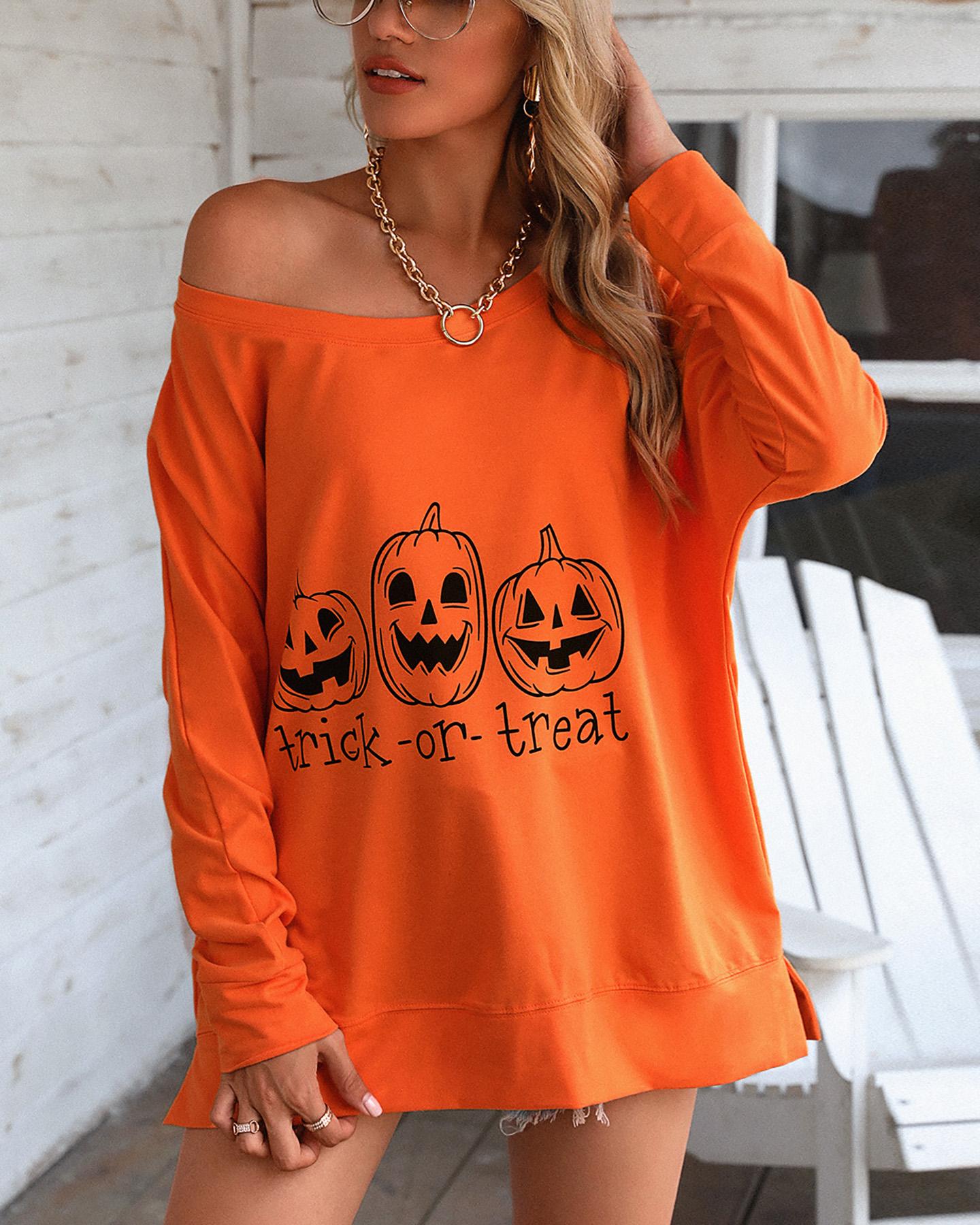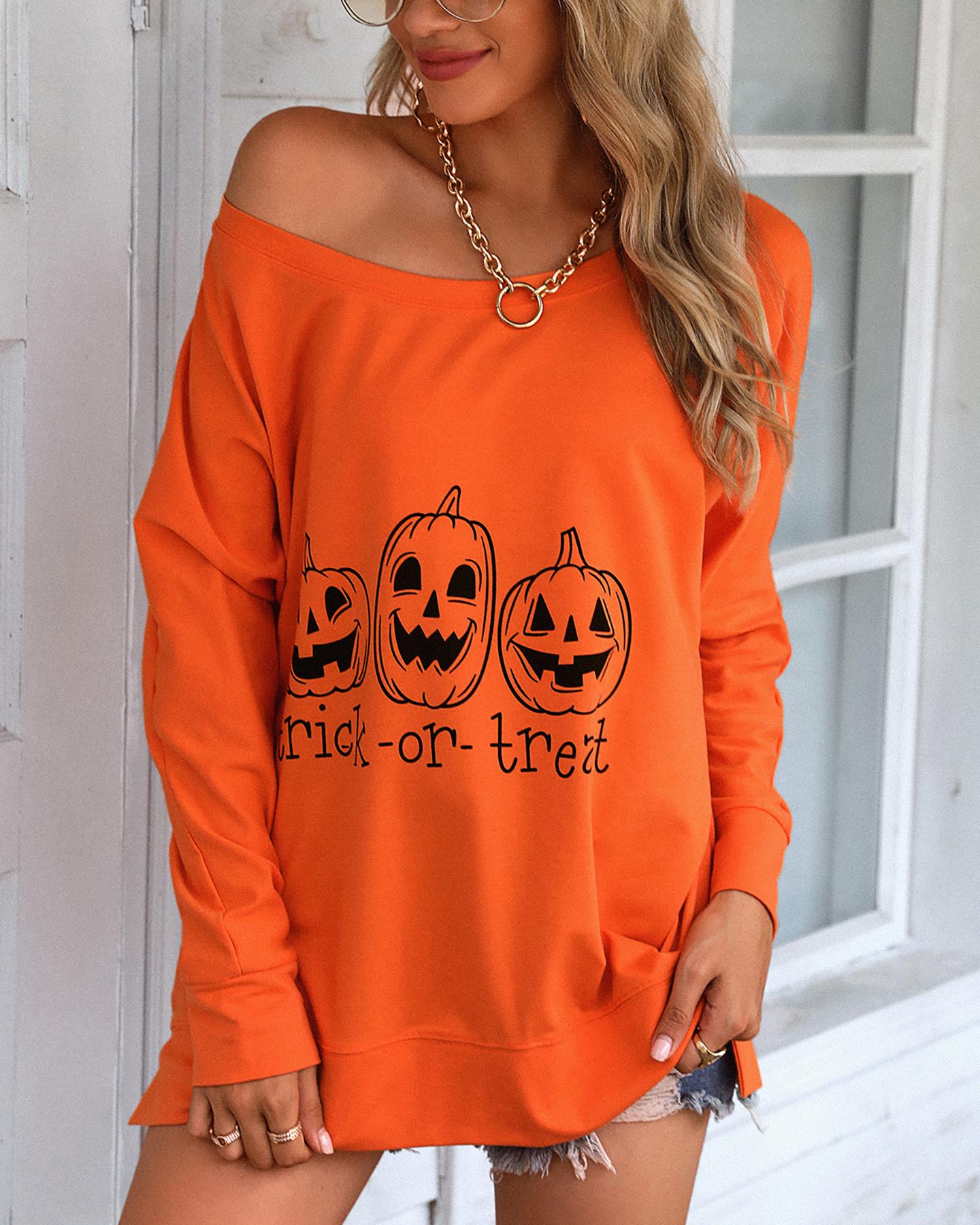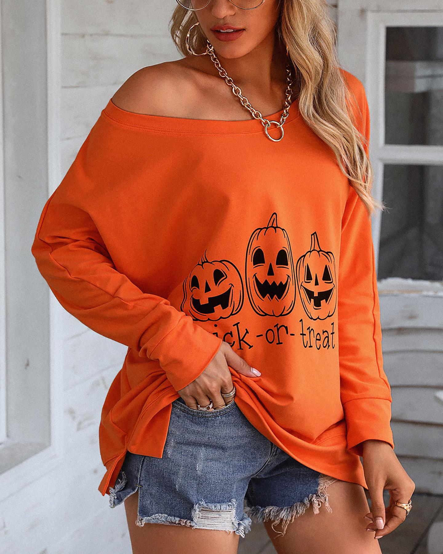 Halloween Letter Pumpkin Print Casual Sweatshirt