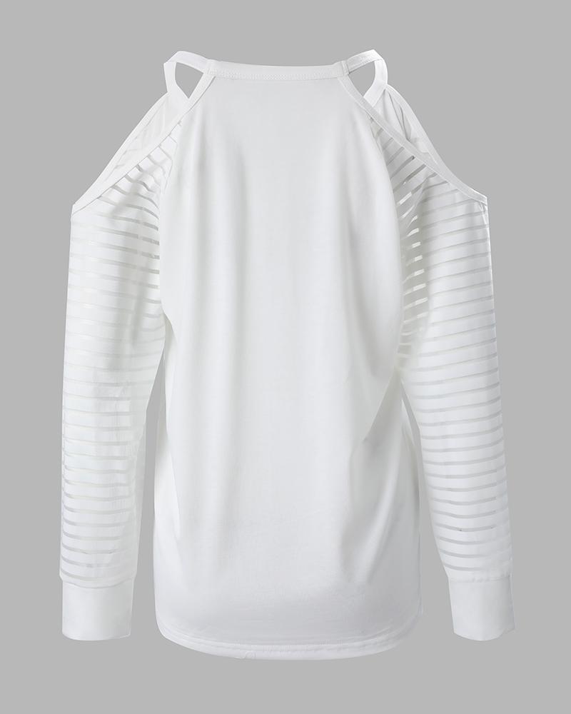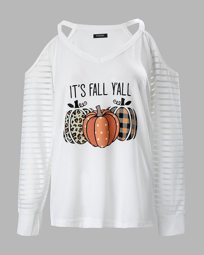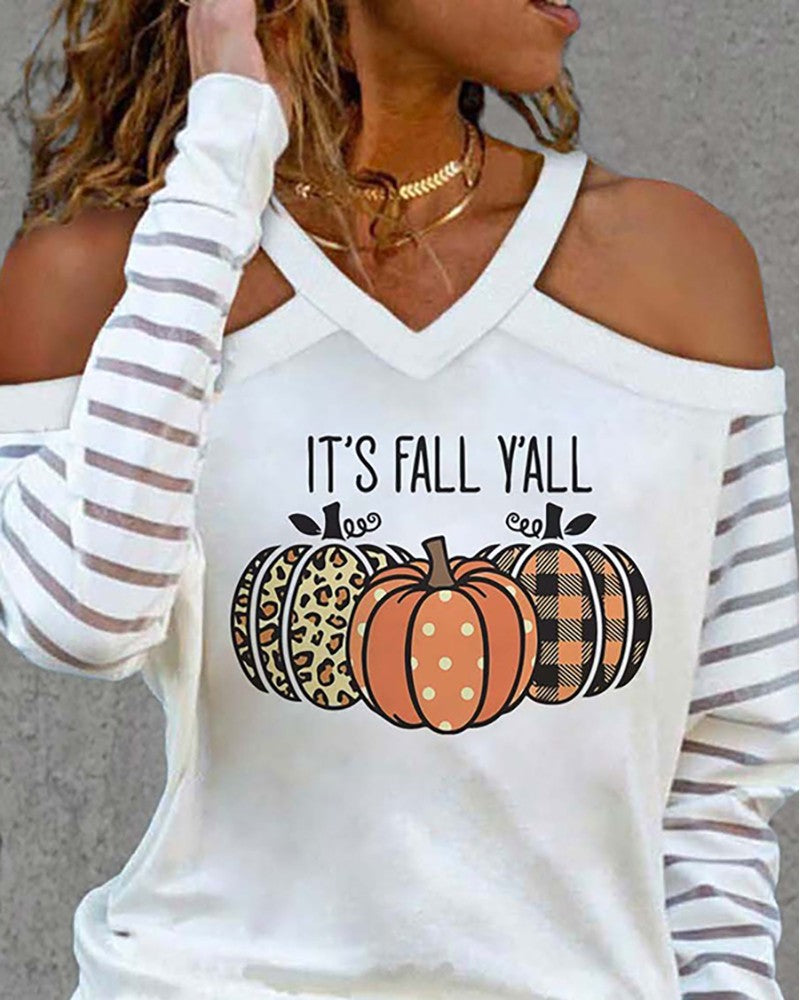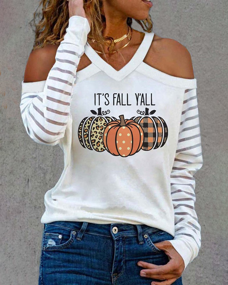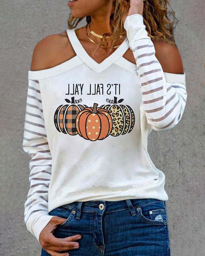 Halloween Pumpkin Letter Print Striped Cold Shoulder Top