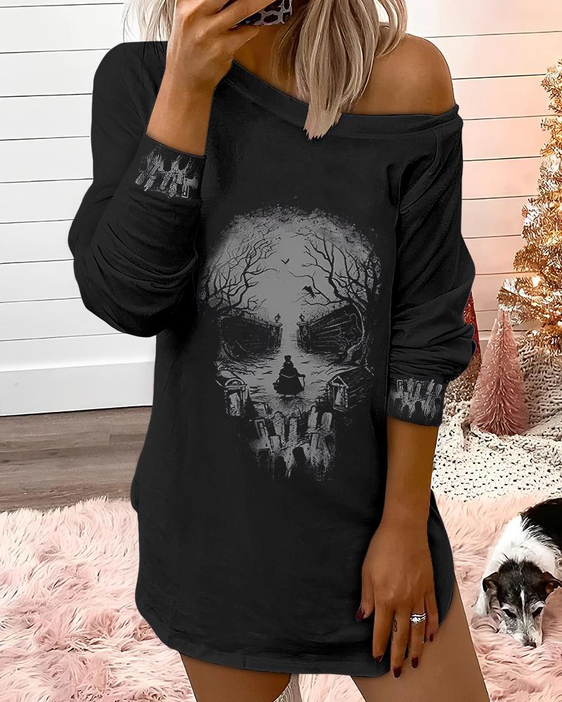 Halloween Skull Novelty Graphic Print Sweatshirt Dress
