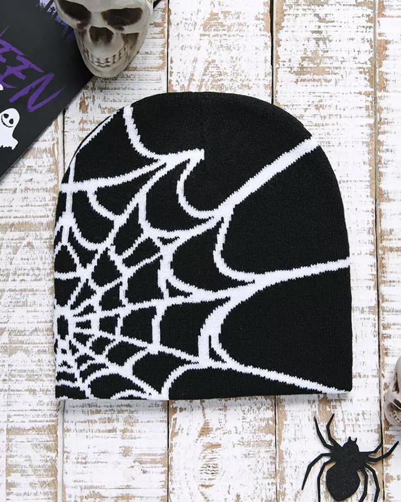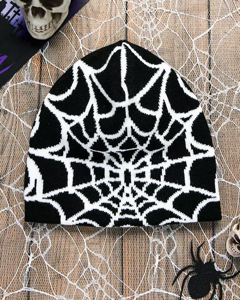 Halloween Spider Web Winter Thermal Knit Hat