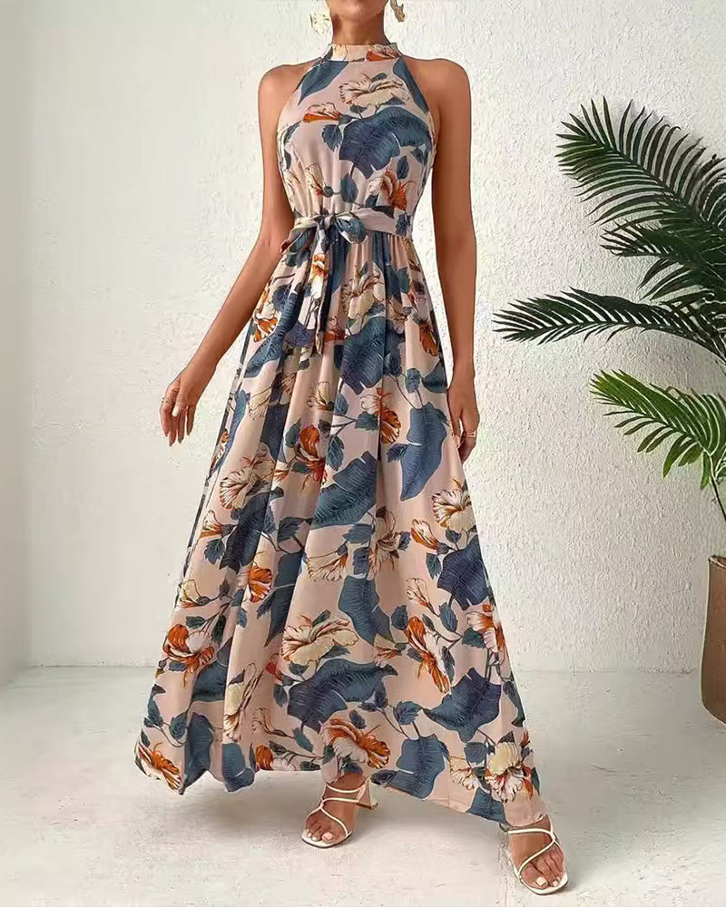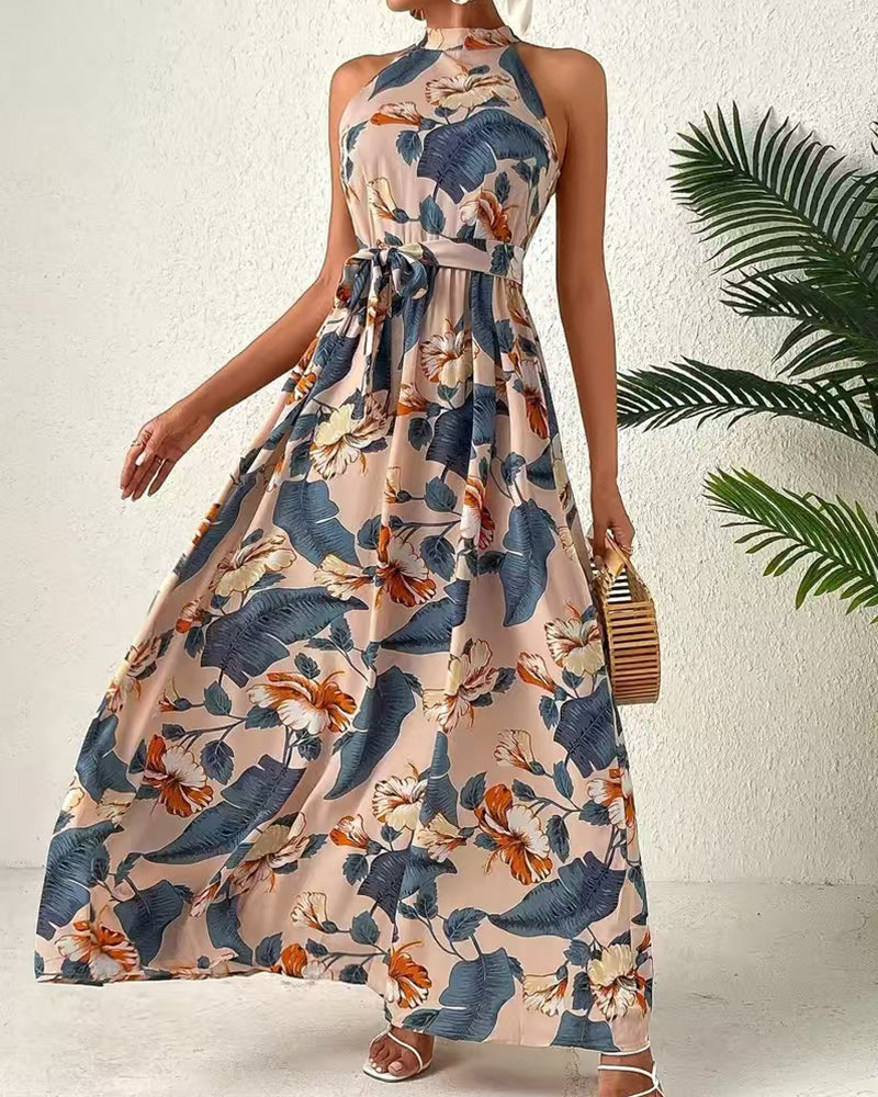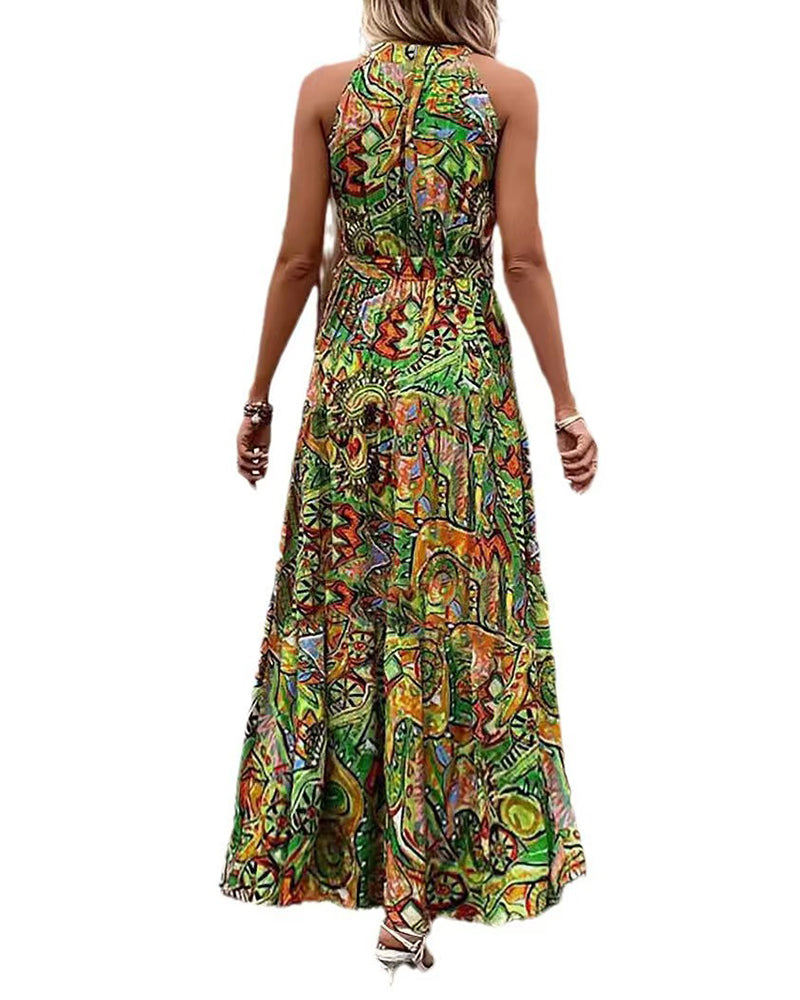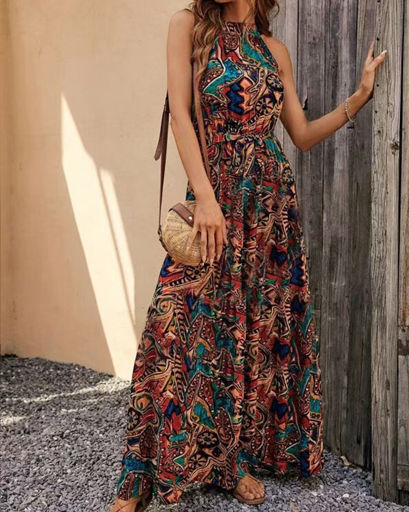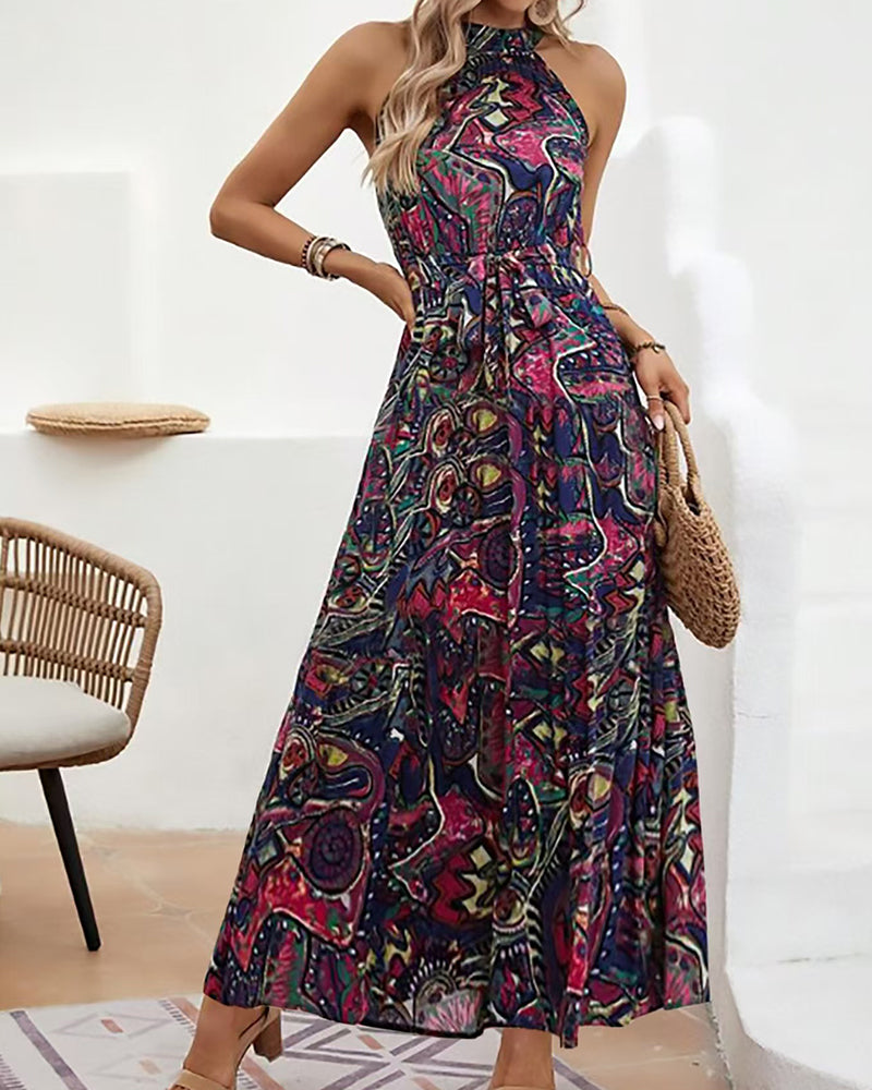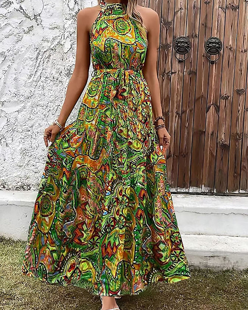 Halter Neck Sleeveless Long Hem Paisley Print Dress