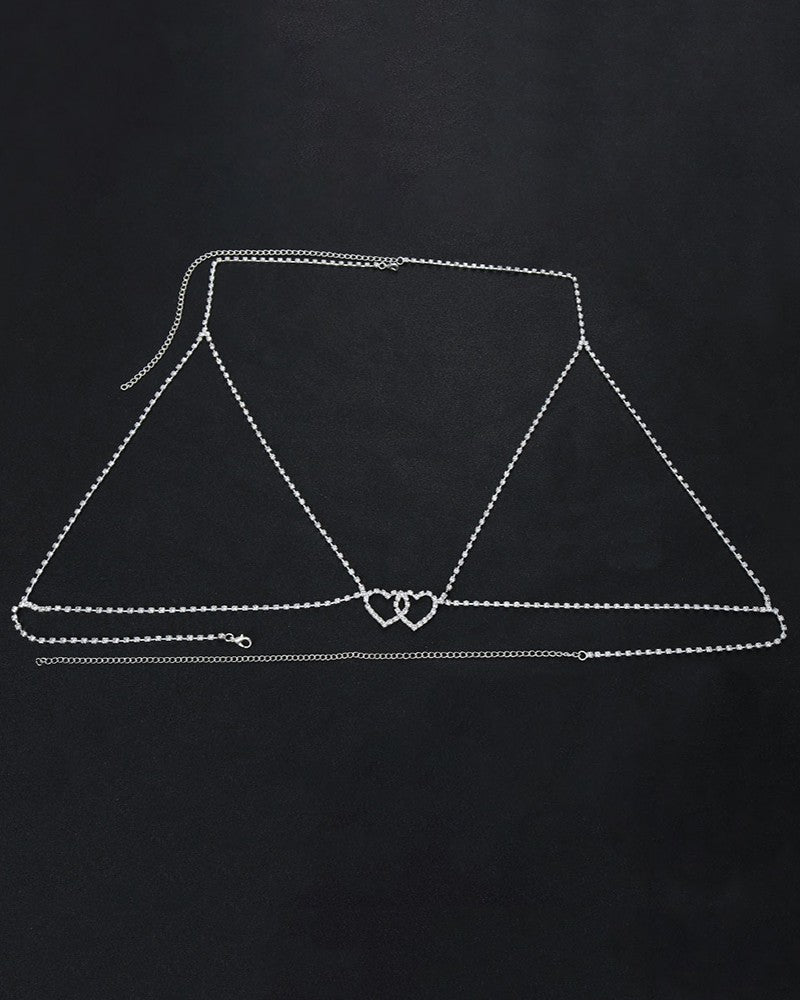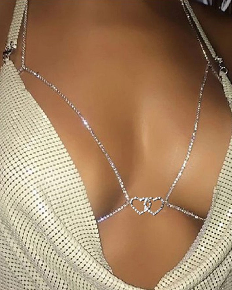 Halter Rhinestone Heart Pattern Bra Body Chain