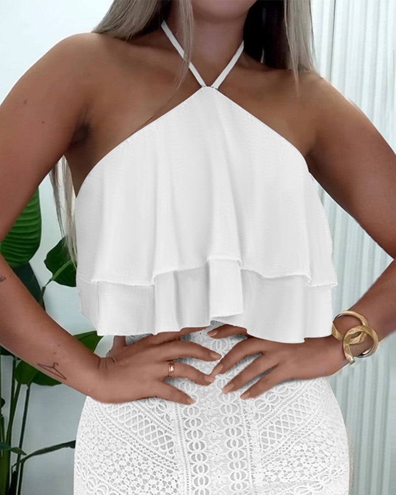 Halter Ruffles Top & Crochet Lace Skirt Set