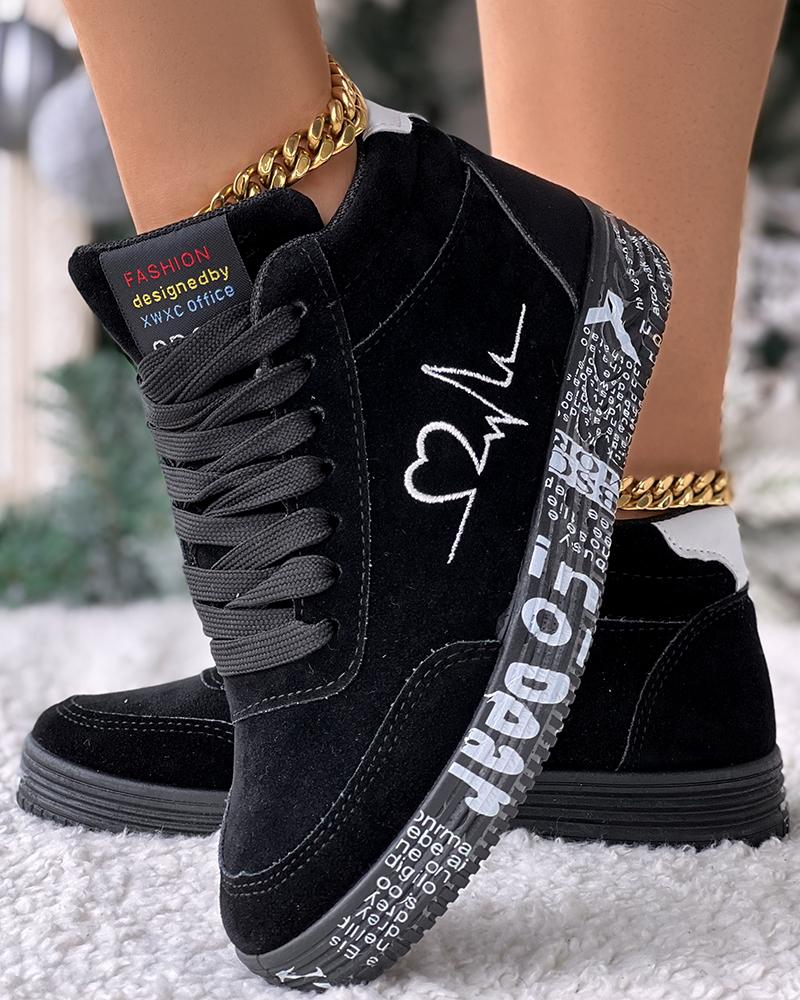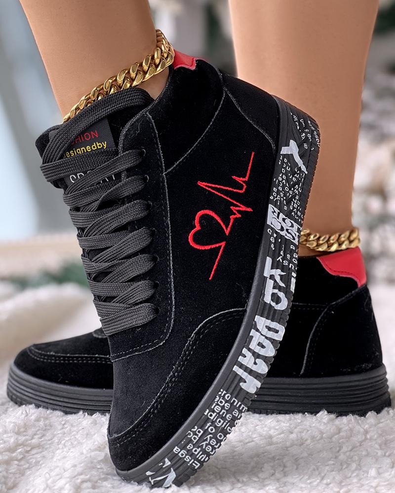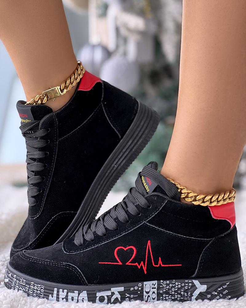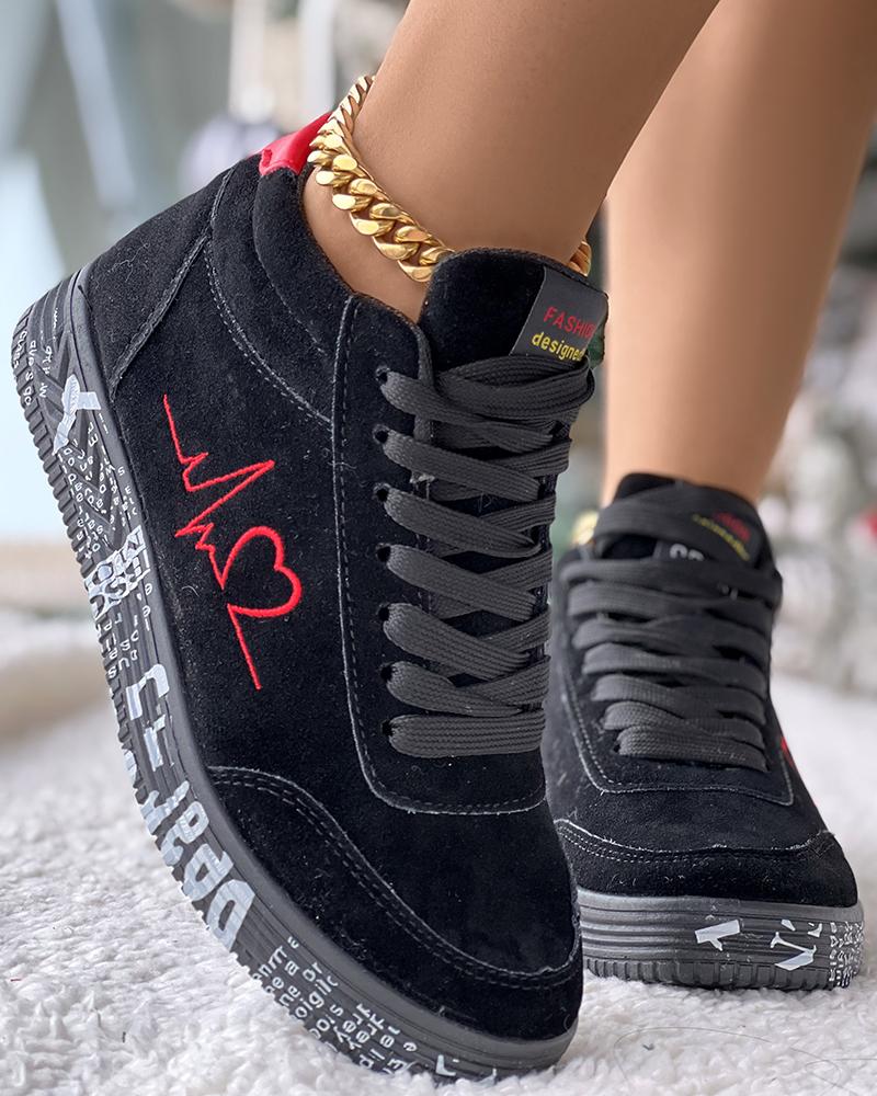 Heart Embroidery Lace up Platform Sneakers
