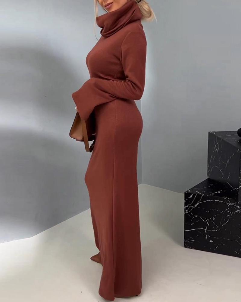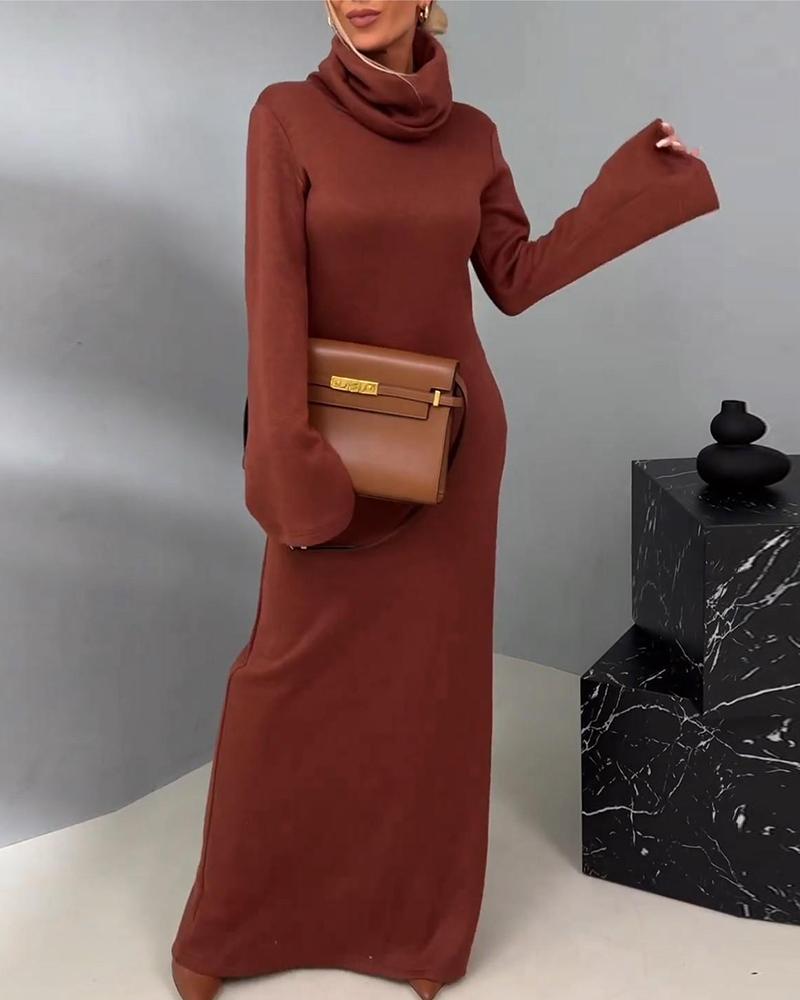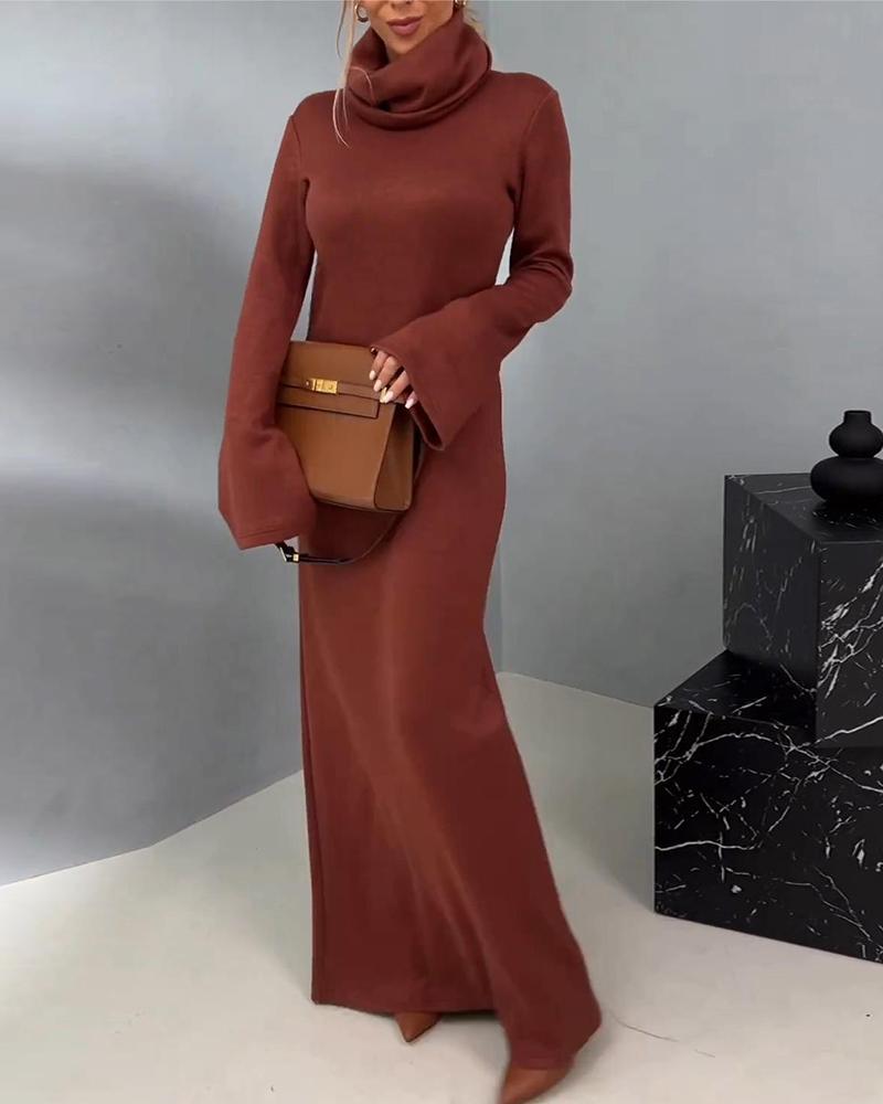 High Neck Bell Sleeve Maxi Dress