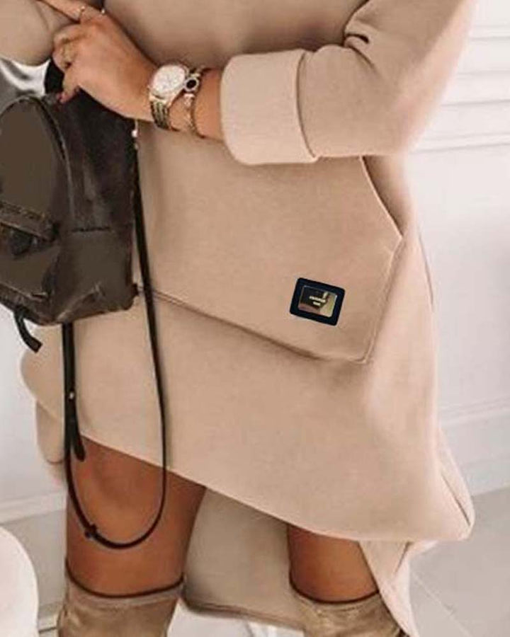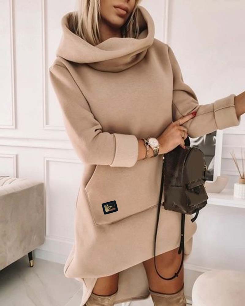 High Neck Long Sleeve Sweatshirt Casual Dress