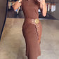 High Neck Sleeveless Side Slit Dress With Pocket(With Belt)