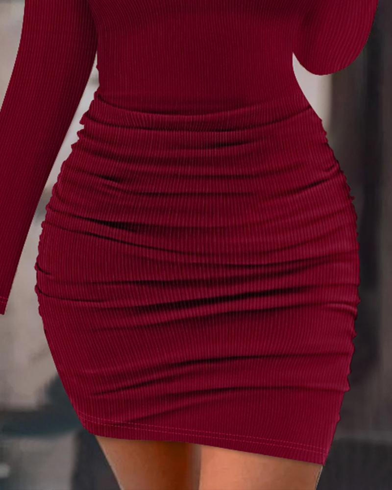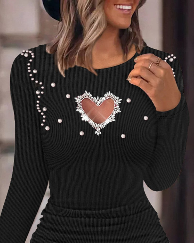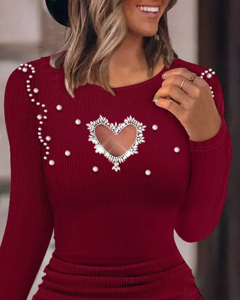 Hollow Heart Beaded Ribbed Bodycon Dress