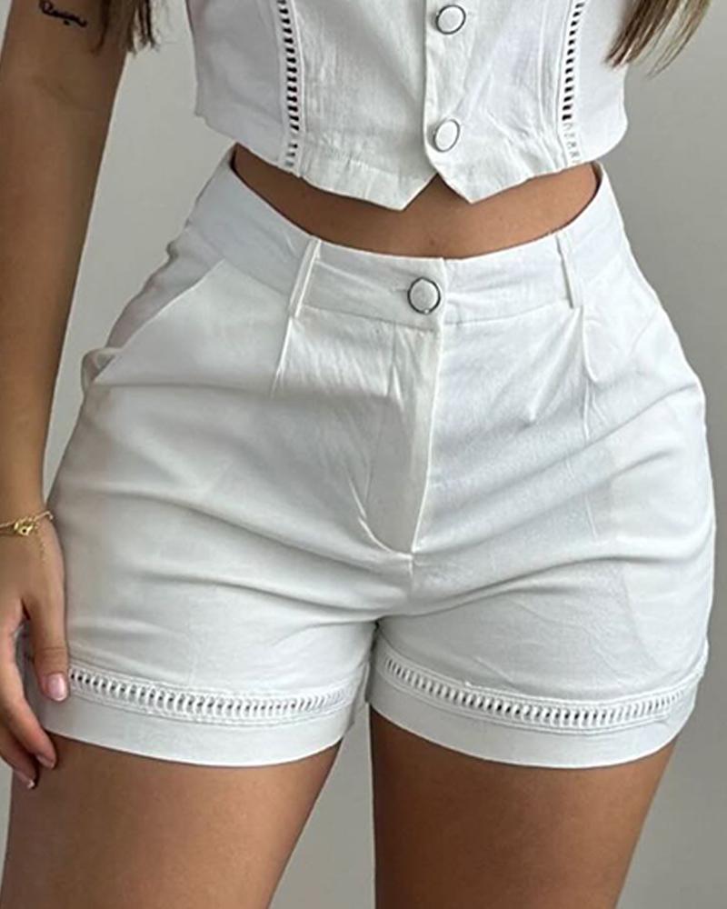 Hollow Out Buttoned Vest Top & Shorts Set