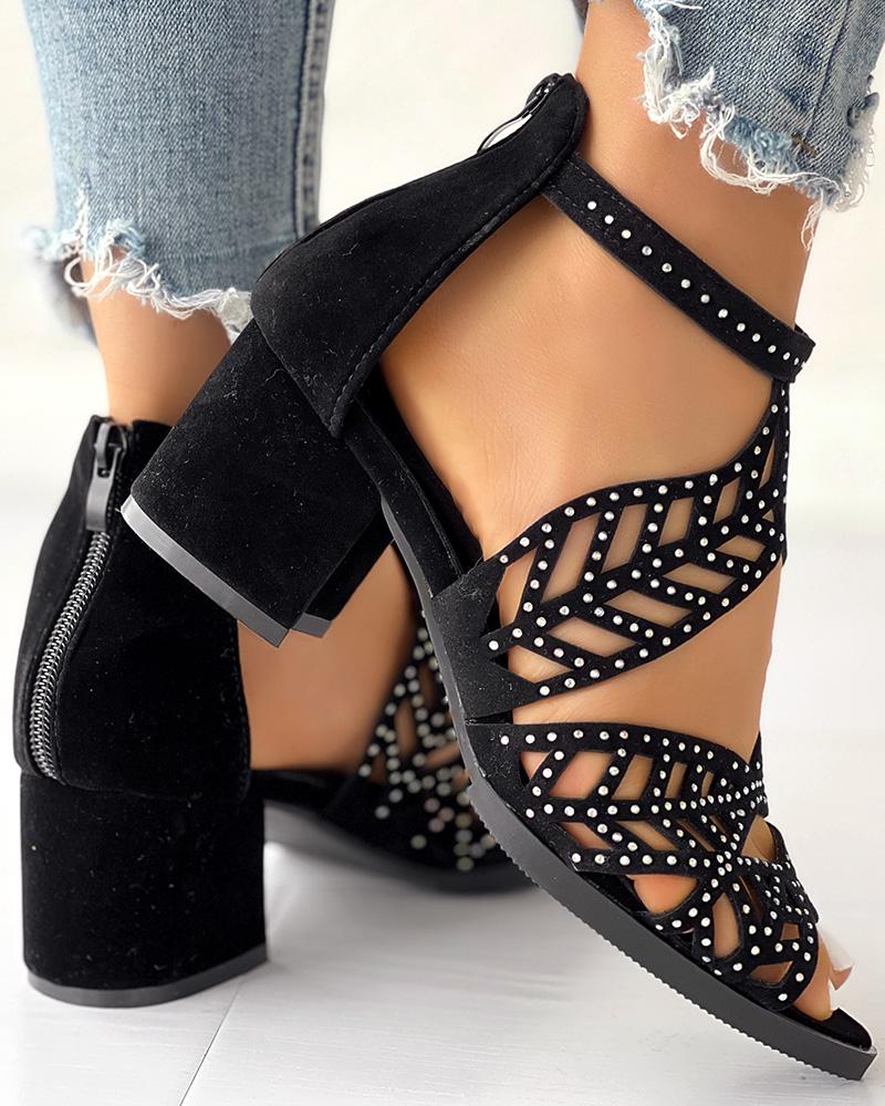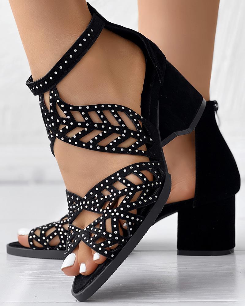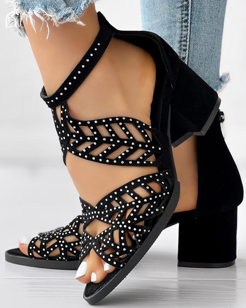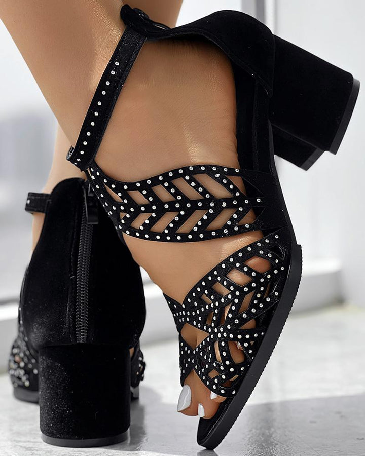 Hollow Out Leaf Rhinestone Decor Latin Dance Heels
