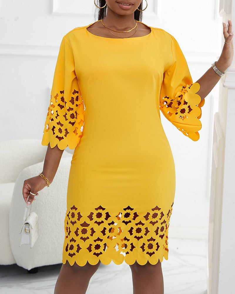 Hollow Out Round Neck Casual Dress