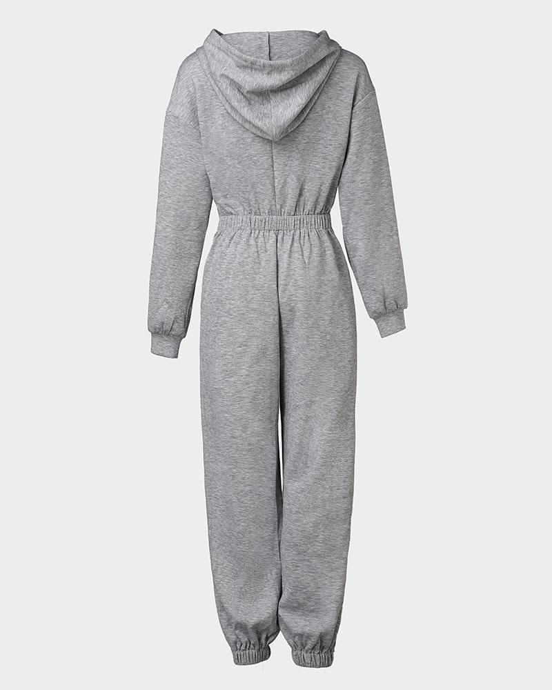 Hooded Kangaroo Pocket Design Stretchy Waist Cuffed Jumpsuit