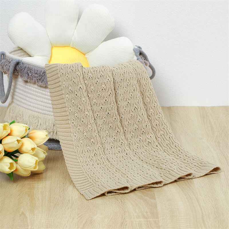 Knit Baby Blankets Neutral Cable Knitted Soft Toddler Blankets for Girls Boys A077