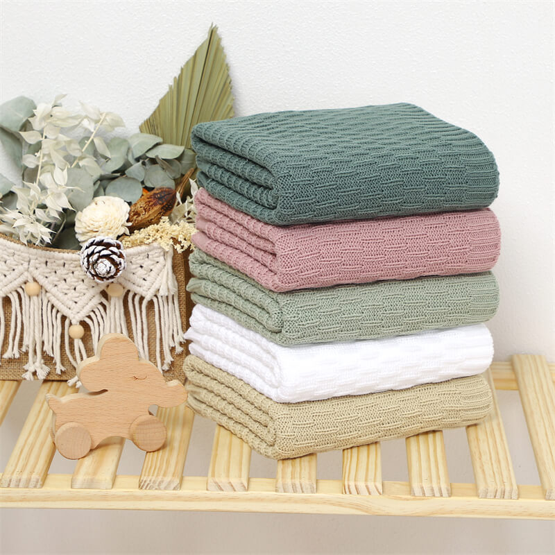 Knit Baby Swaddling Blanket - 100% Cotton Lightweight Soft Cozy Receiving Swaddle Crib Stroller Quilt Blanket A057