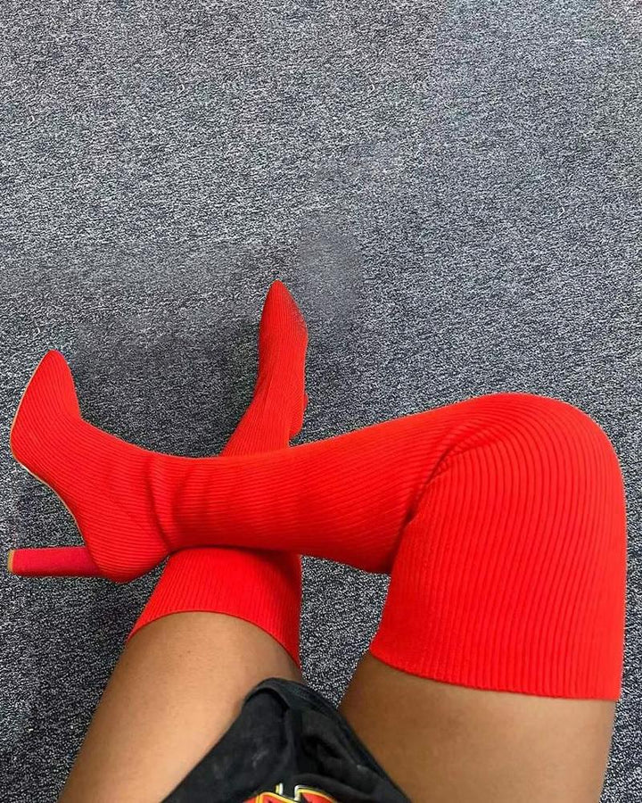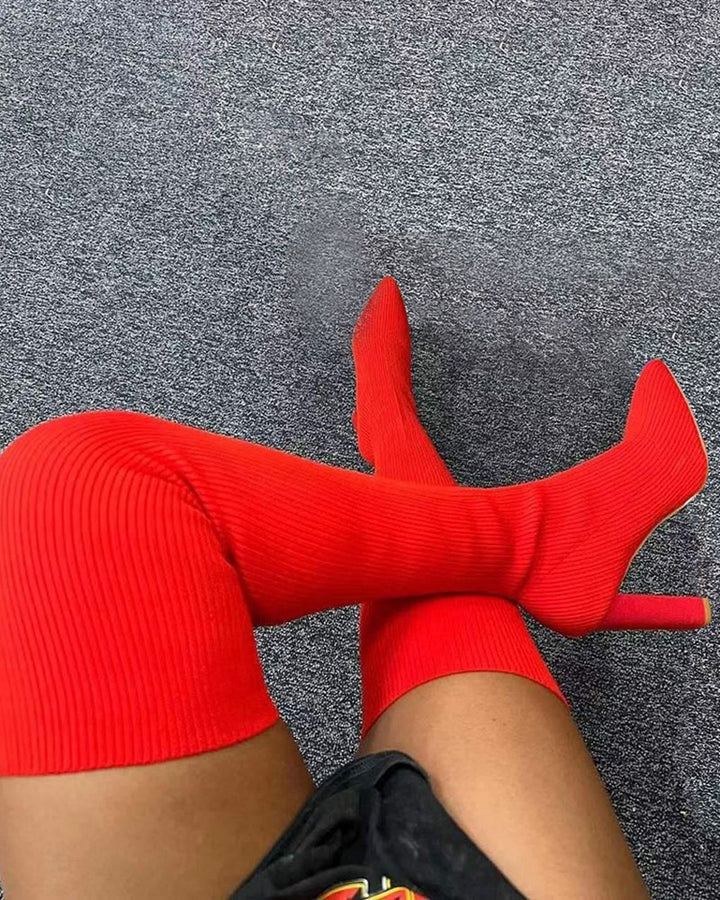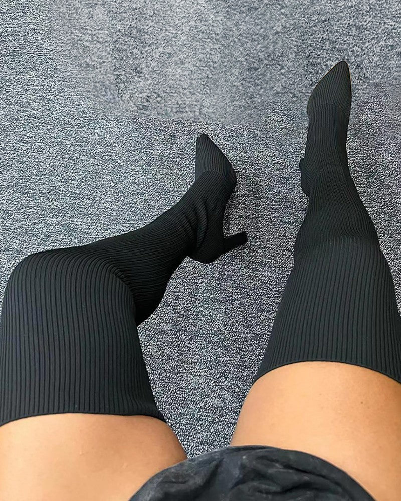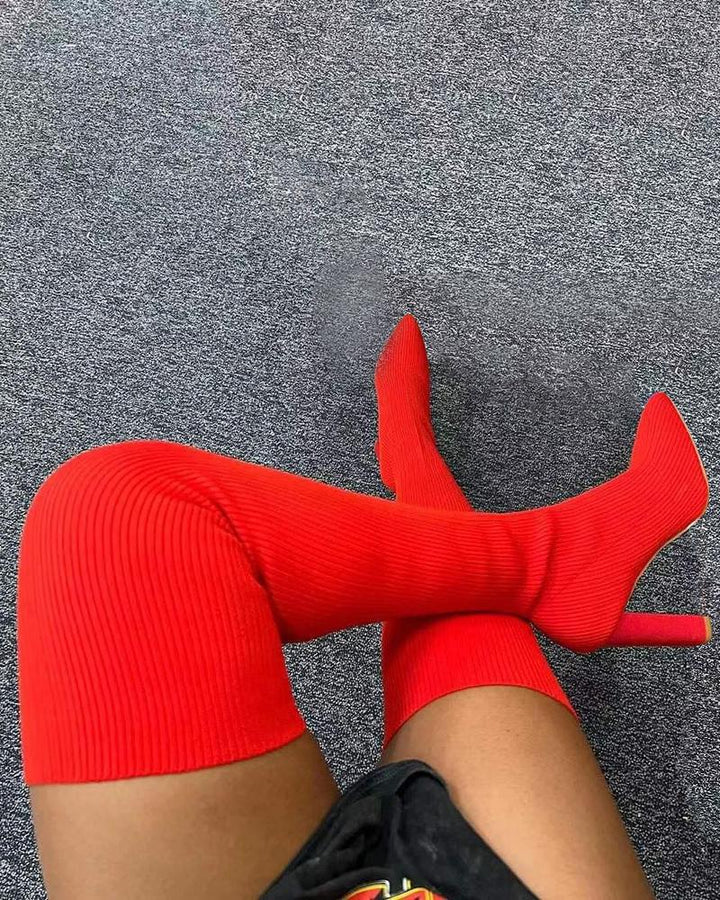 Knit Point Toe Over The Knee Boots