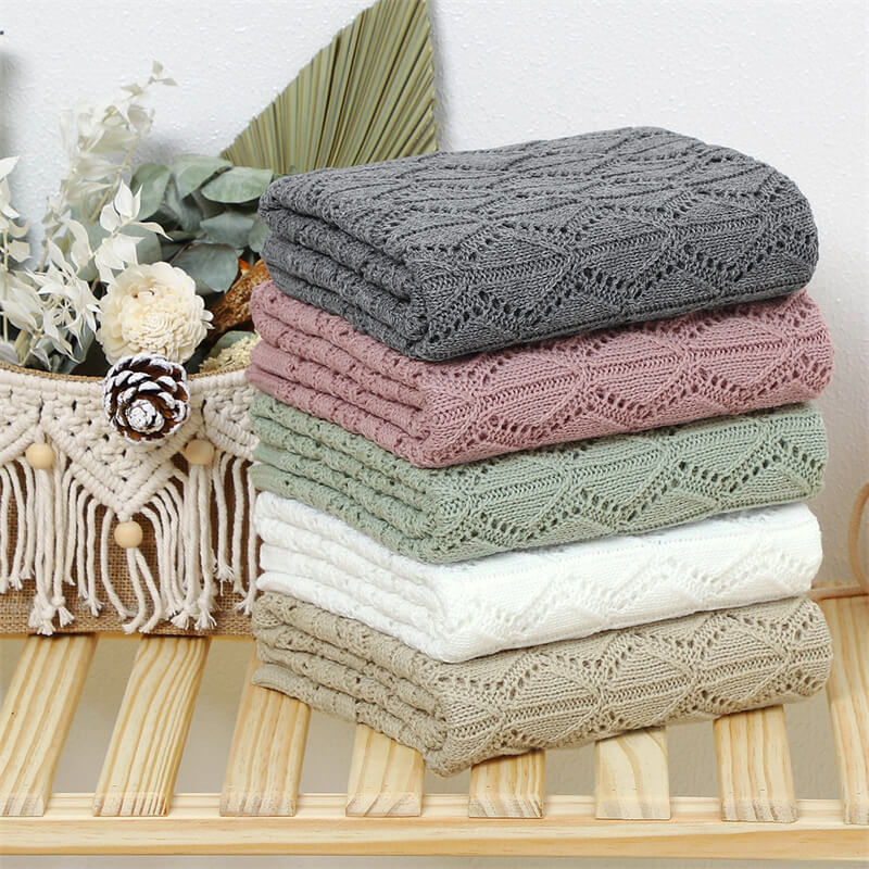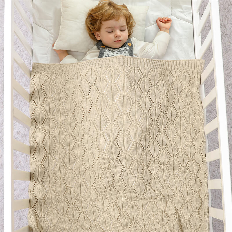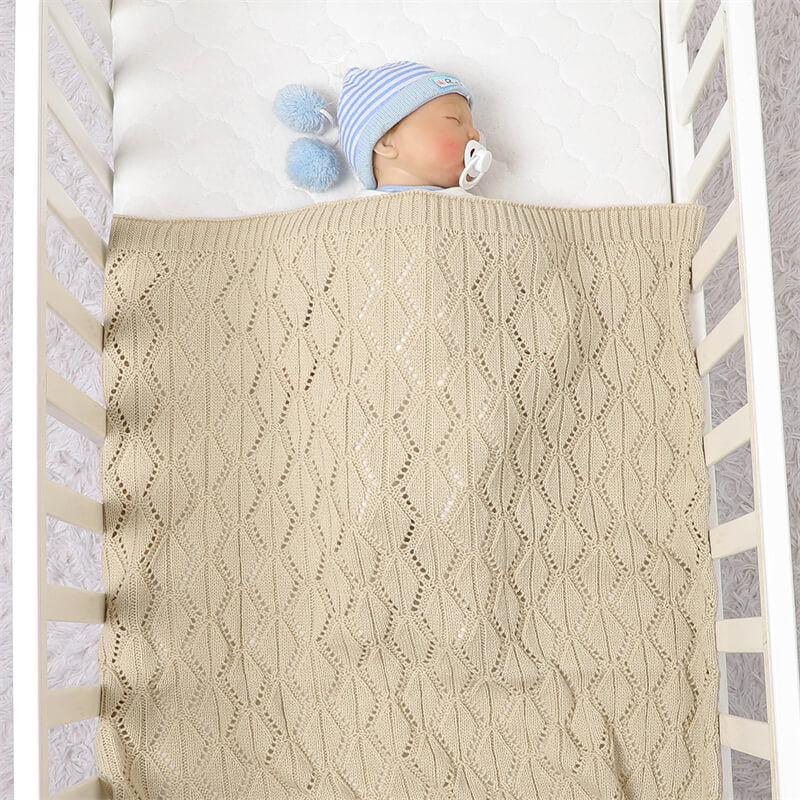 Knitted Baby Blankets Crib Crochet Blanket Toddler Security Blanket Soft Cotton Knit Gender Neutral Baby Blankets Infant Swaddle A054