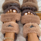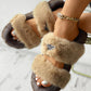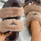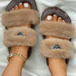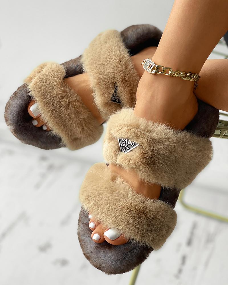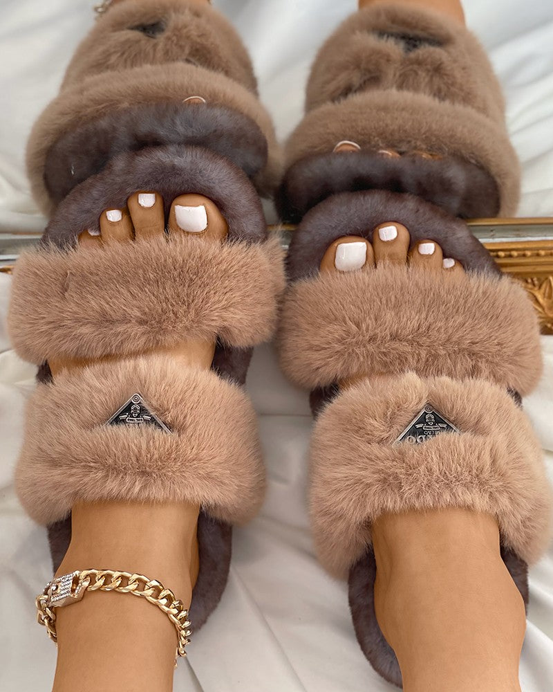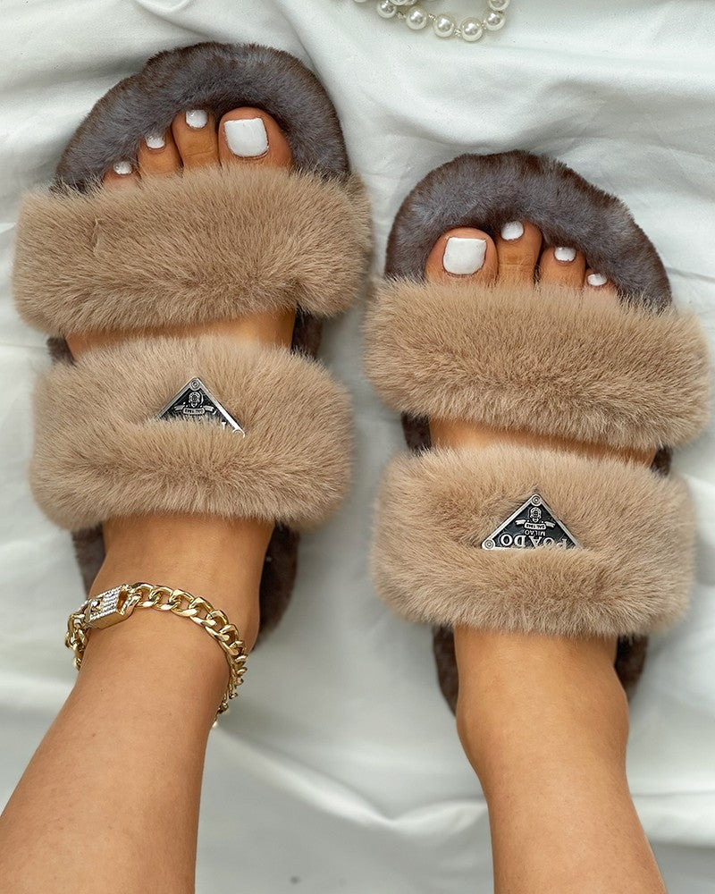 Label Decor Double Band Fluffy Slippers