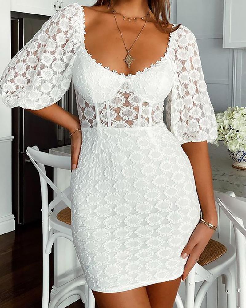 Lace Lantern Sleeve Bodycon Dress