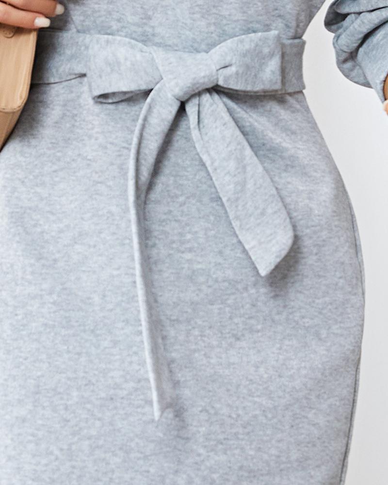 Lace Trim Cold Shoulder Belted Long Sleeve Dress