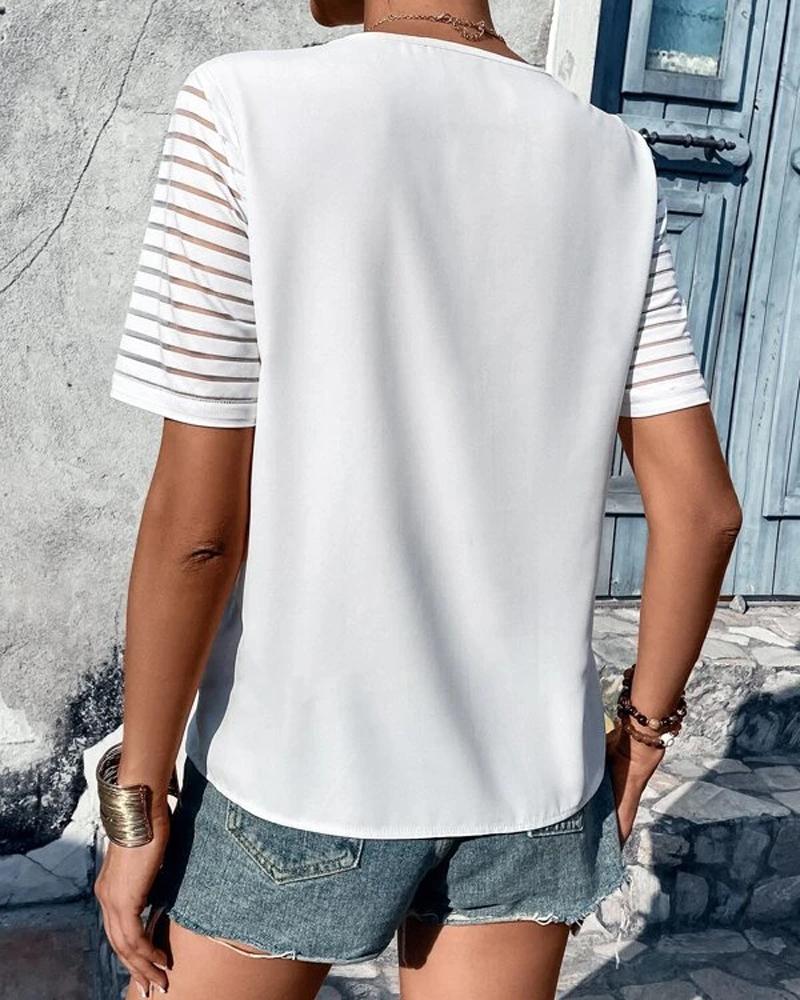 Experience the perfect combination of style and comfort with our Lace Trim Contrast Mesh T-shirt. Featuring delicate lace trim and a stylish mesh design, this t-shirt is sure to elevate your wardrobe. Stay cool and fashionable all day long!